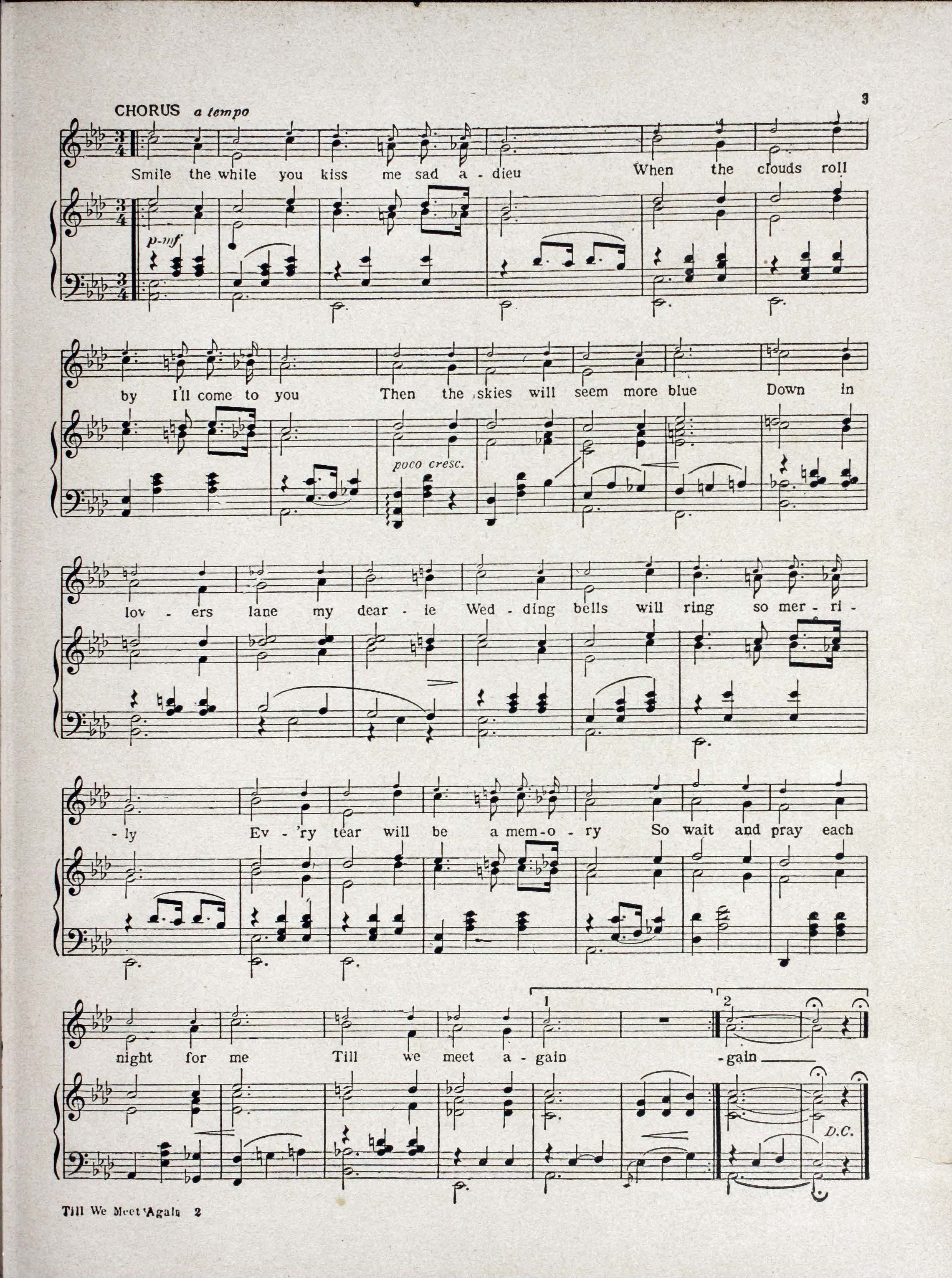Till we meet again : song / lyric by Raymond B. Egan ; music by Richard A. Whiting.