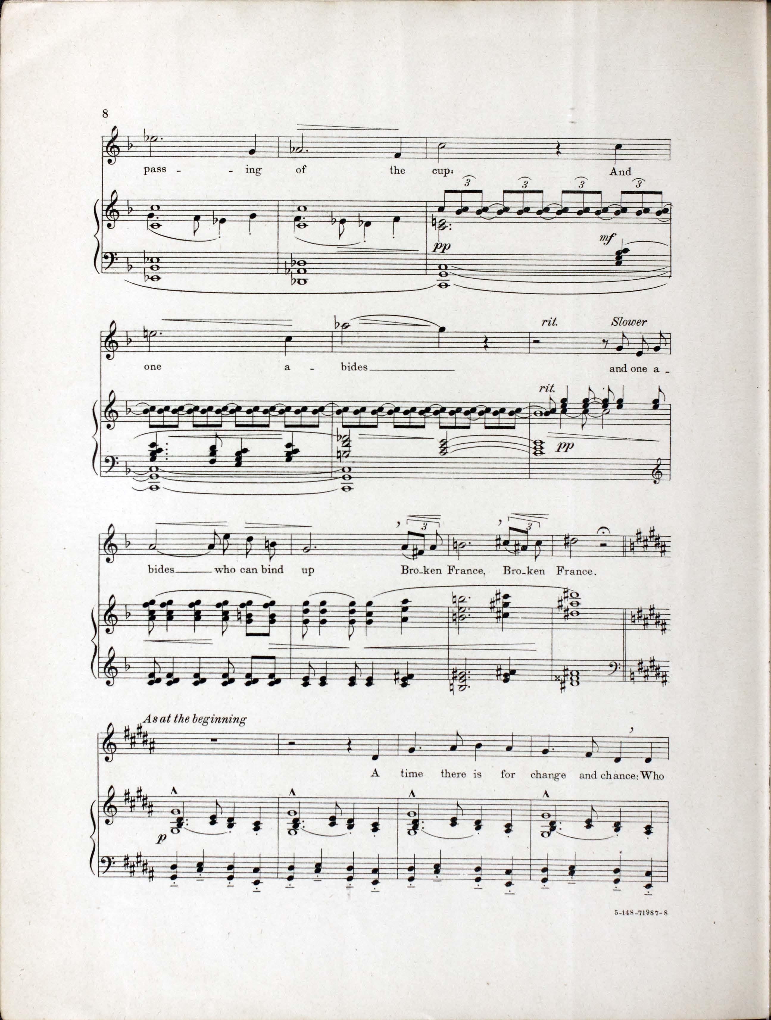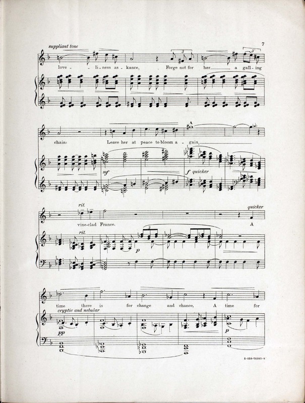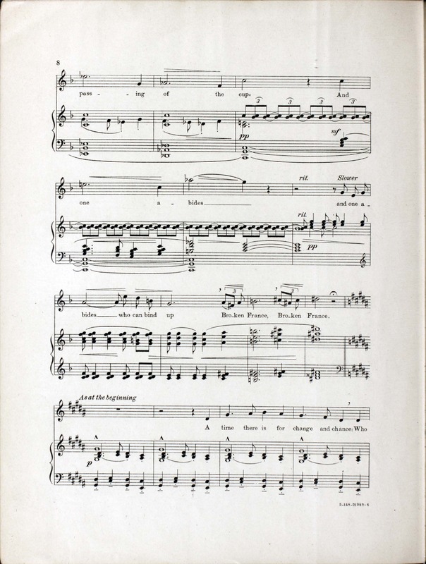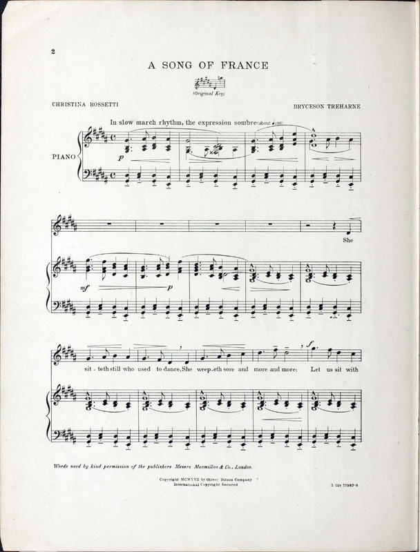 Treharne, Bryceson, 1879-1948. 2000. “A Song of France Bryceson Treharne ; [words By] Christina Rossetti”. Boston : Oliver Ditson Company, World War I Sheet Music, accessed February 11, 2026, https://digitalexhibits.library.wustl.edu/s/wwimusic/item/36341