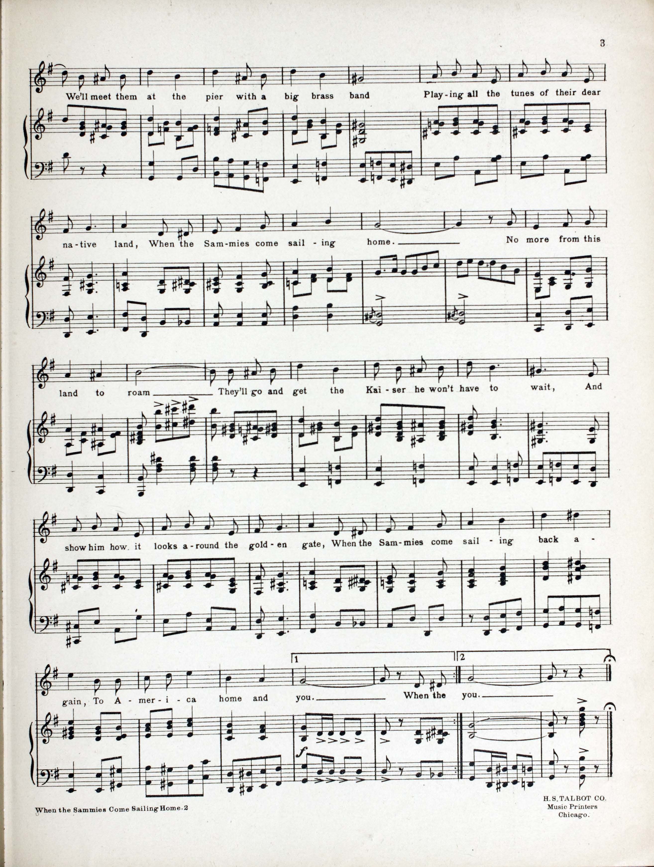 - "H.S. Talbot Co., music printers, Chicago" -- at end of music.