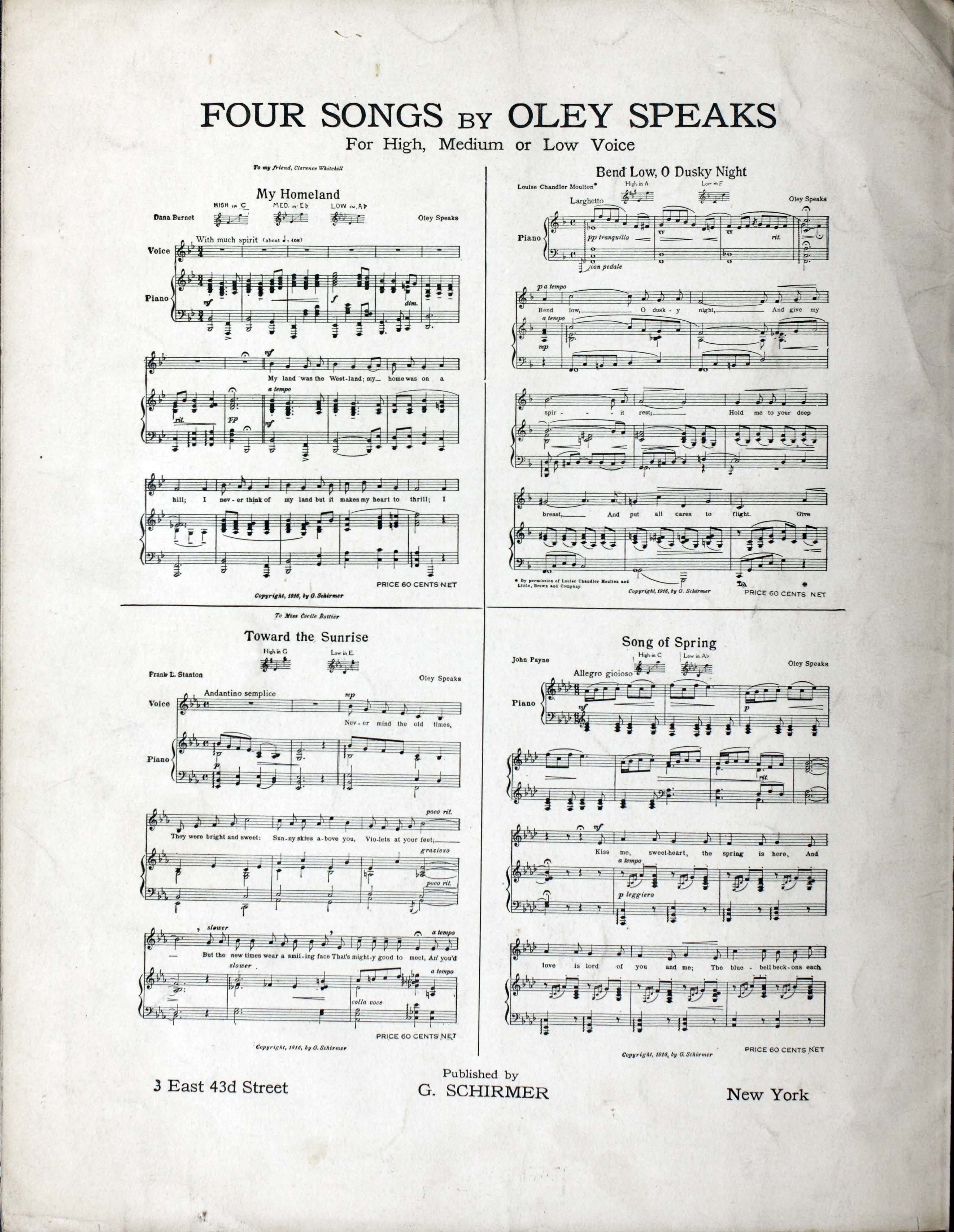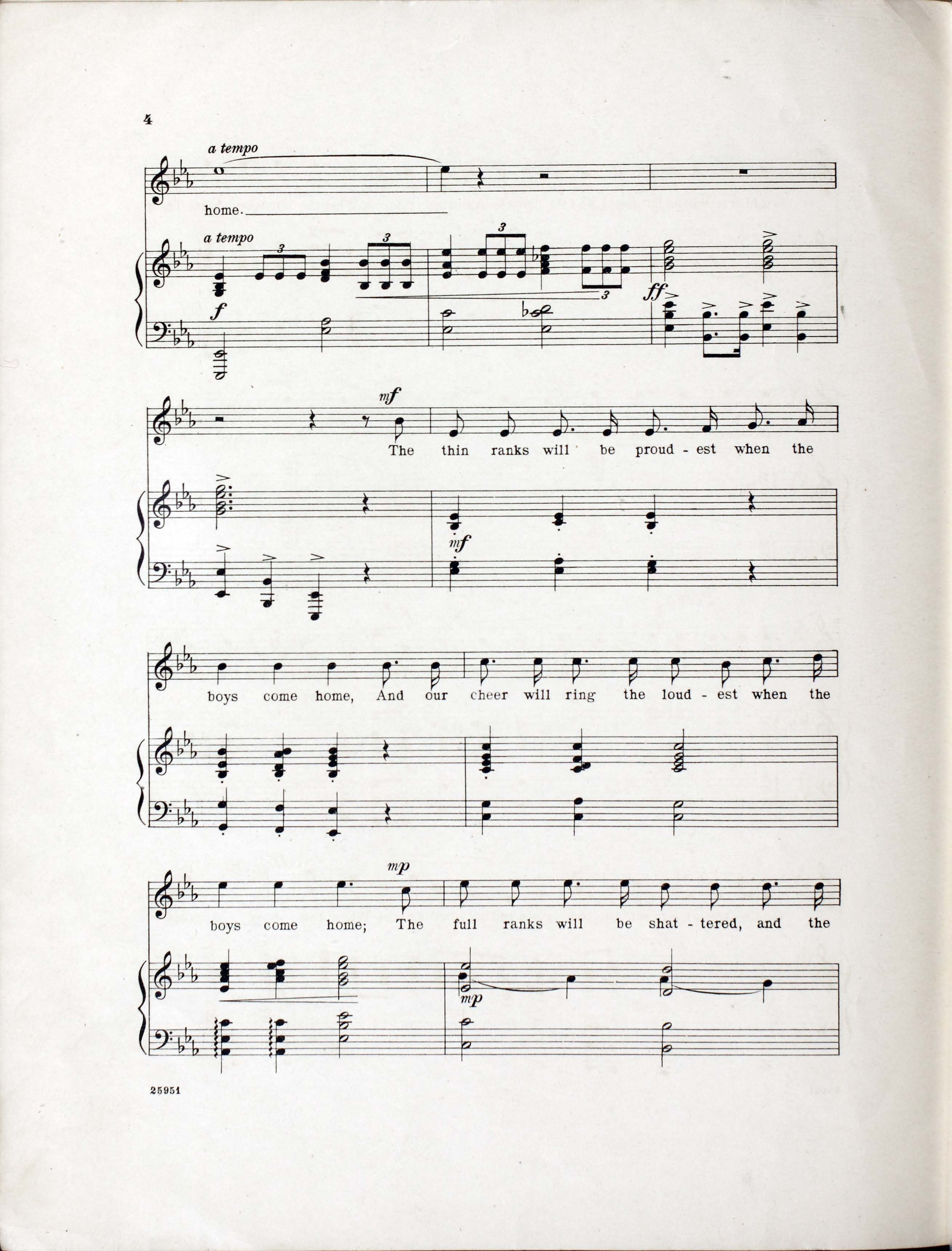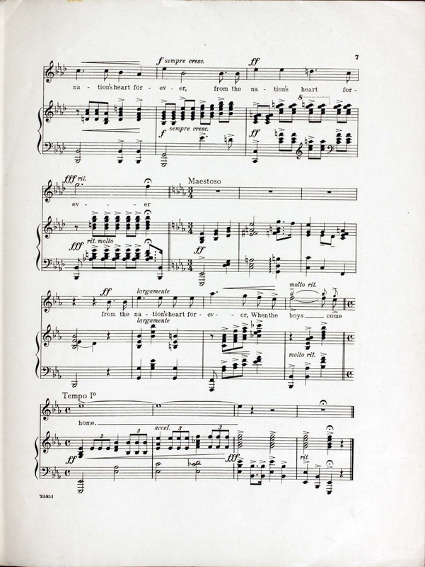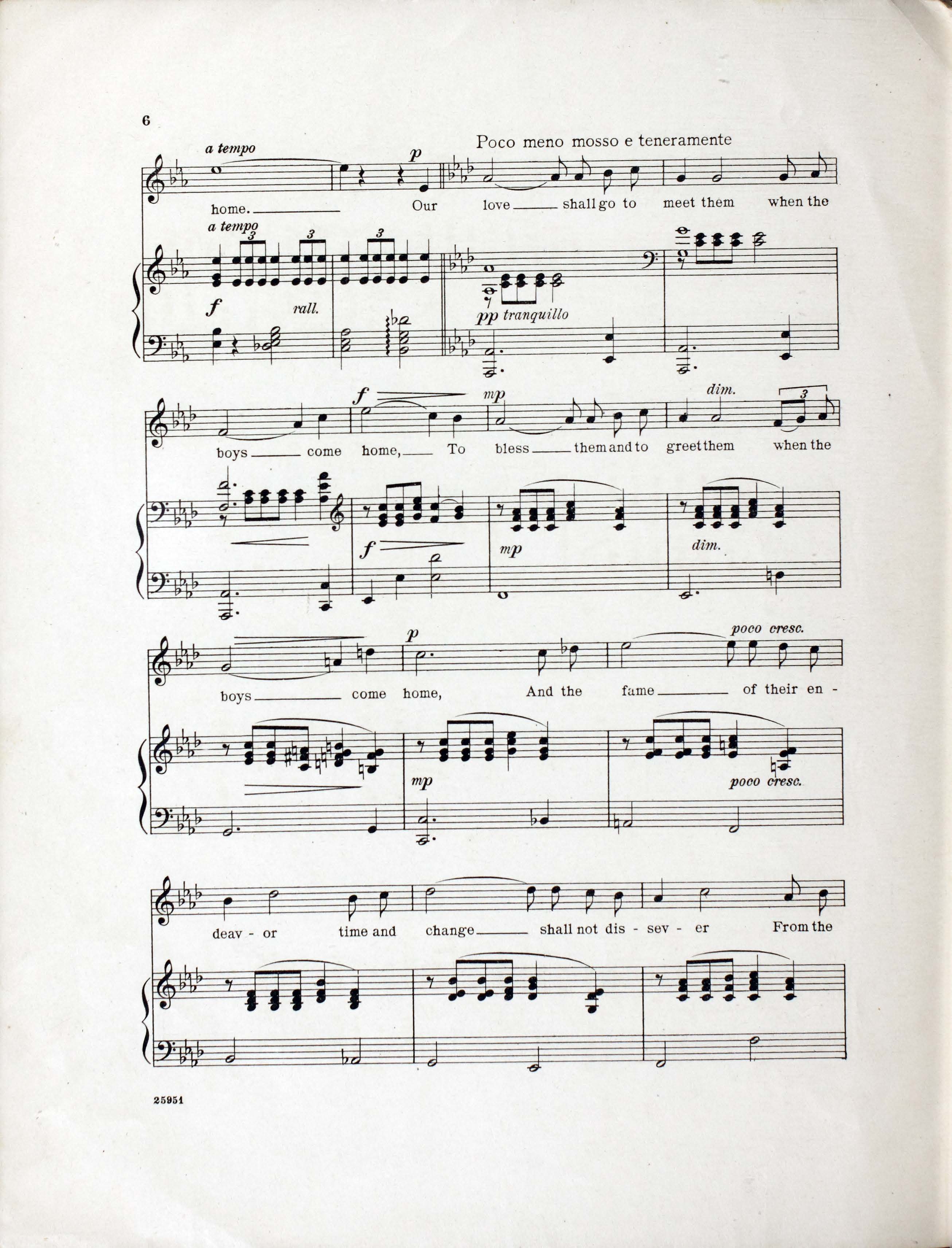 Speaks, Oley, 1876-1948. 2000. “When the Boys Come Home Words by John Hay ; Music by Oley Speaks”. New York : G. Schirmer, World War I Sheet Music, accessed February 11, 2026, https://digitalexhibits.library.wustl.edu/s/wwimusic/item/36353