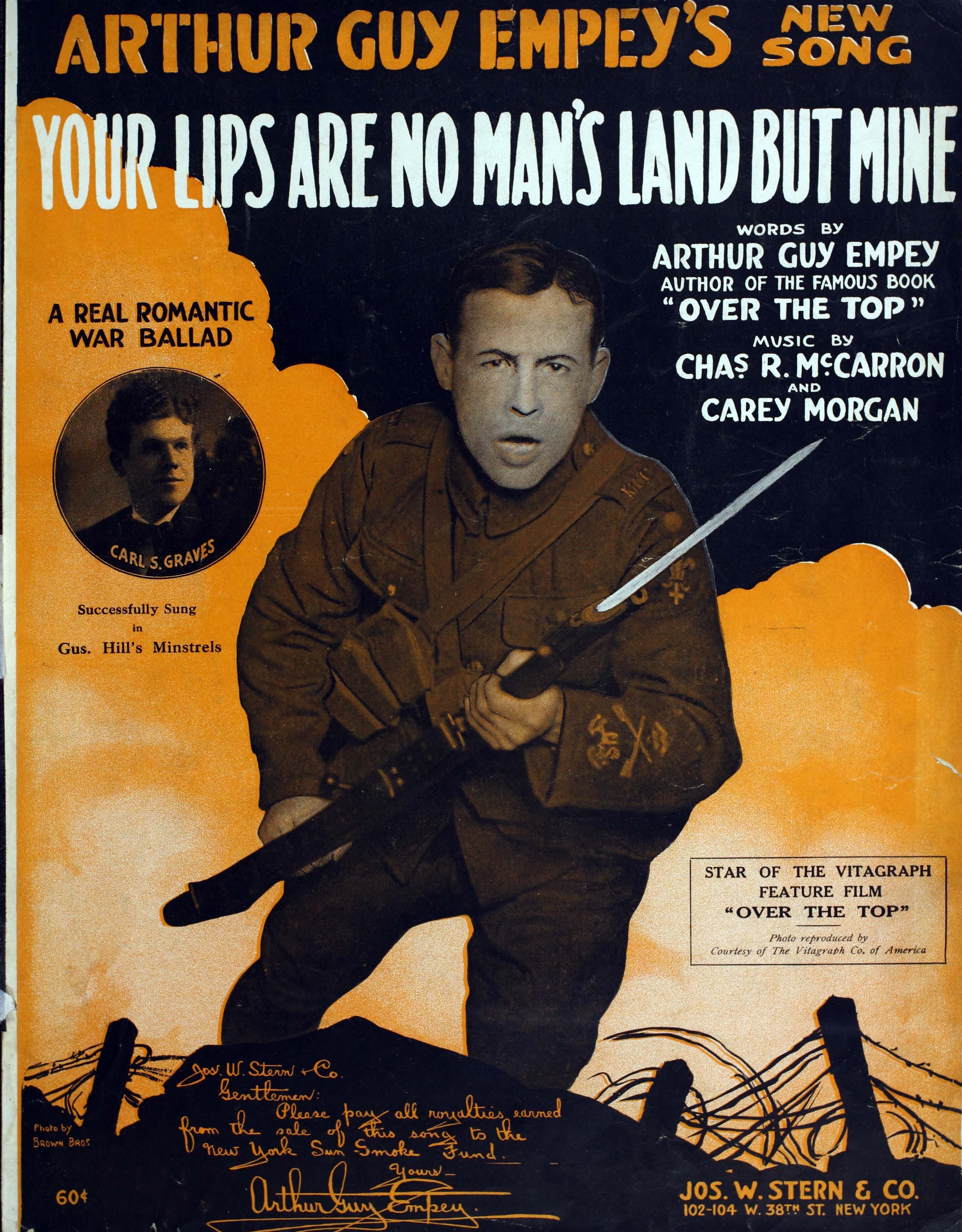 - "Jos. W. Stern + Co., Gentlemen, please pay all royalties earned from the sale of this song to the New York Sun Smoke Fund, yours, Arthur Guy Empey."
