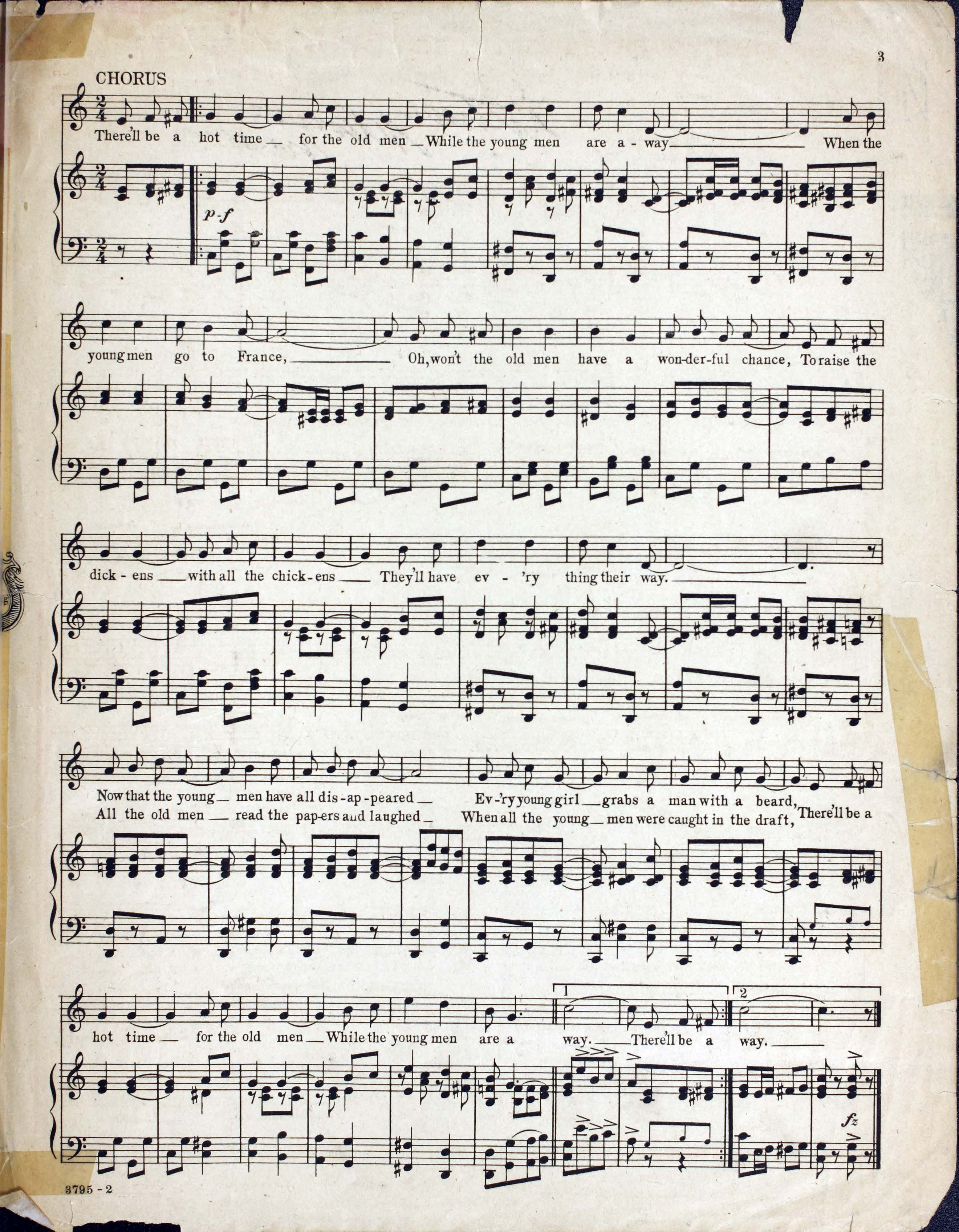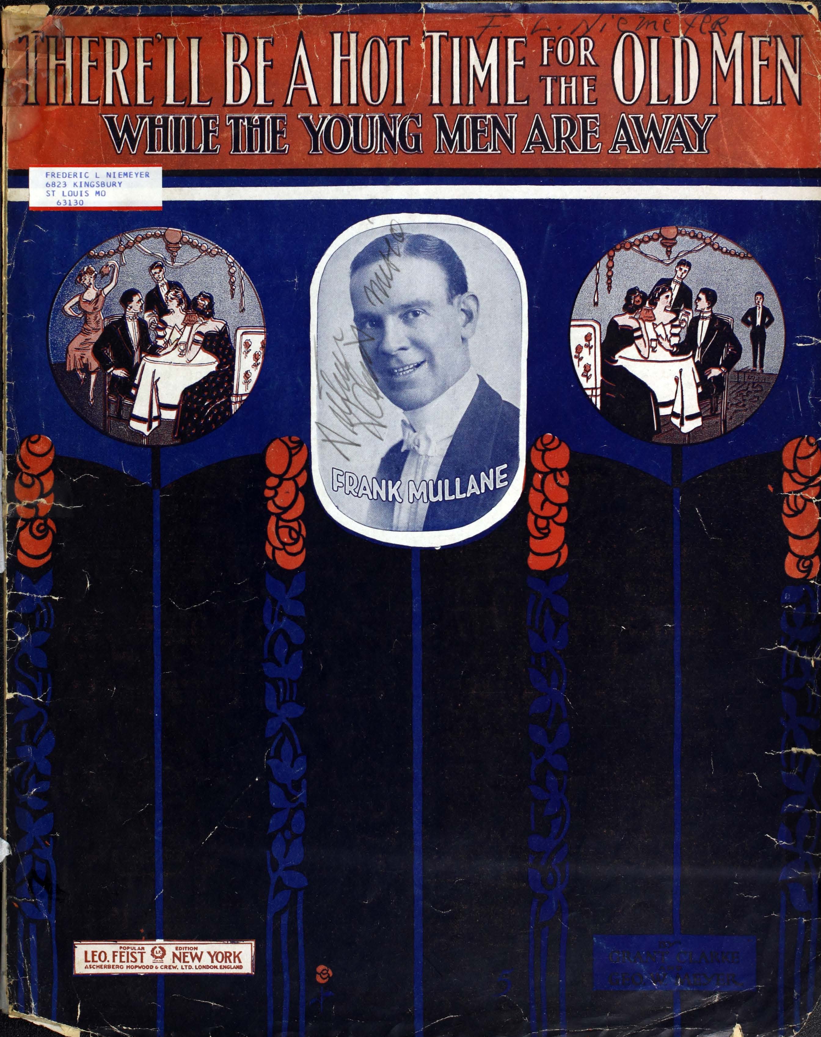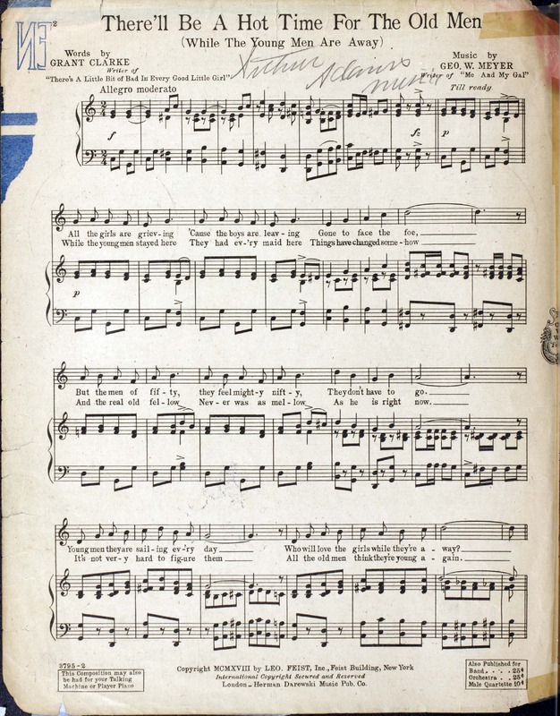 Meyer, George W., 1884-1959. 2000. “There’ll Be a Hot Time for the Old Men : (While the Young Men Are Away) Words by Grant Clarke ; Music by Geo. W. Meyer”. New York : Leo Feist, World War I Sheet Music, accessed February 12, 2026, https://digitalexhibits.library.wustl.edu/s/wwimusic/item/36363