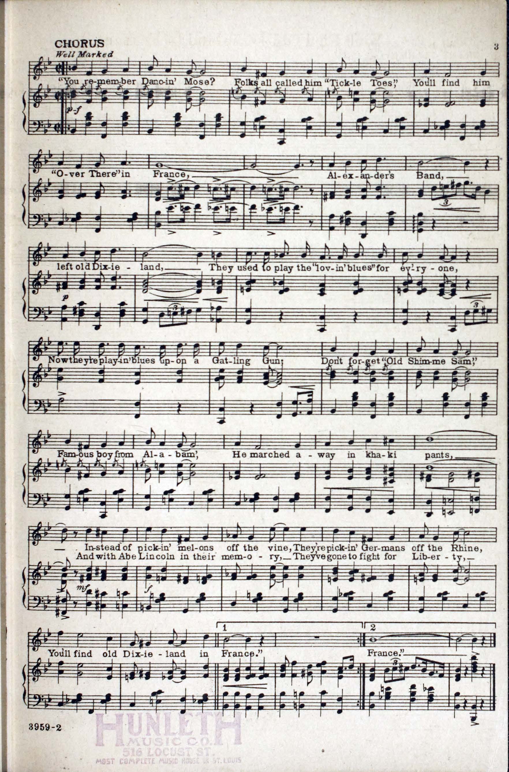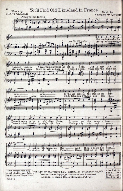 Meyer, George W., 1884-1959. 2000. “You’ll Find Old Dixieland in France Words by Grant Clarke ; Music by George W. Meyer”. New York : Leo Feist, Inc, World War I Sheet Music, accessed February 12, 2026, https://digitalexhibits.library.wustl.edu/s/wwimusic/item/36667