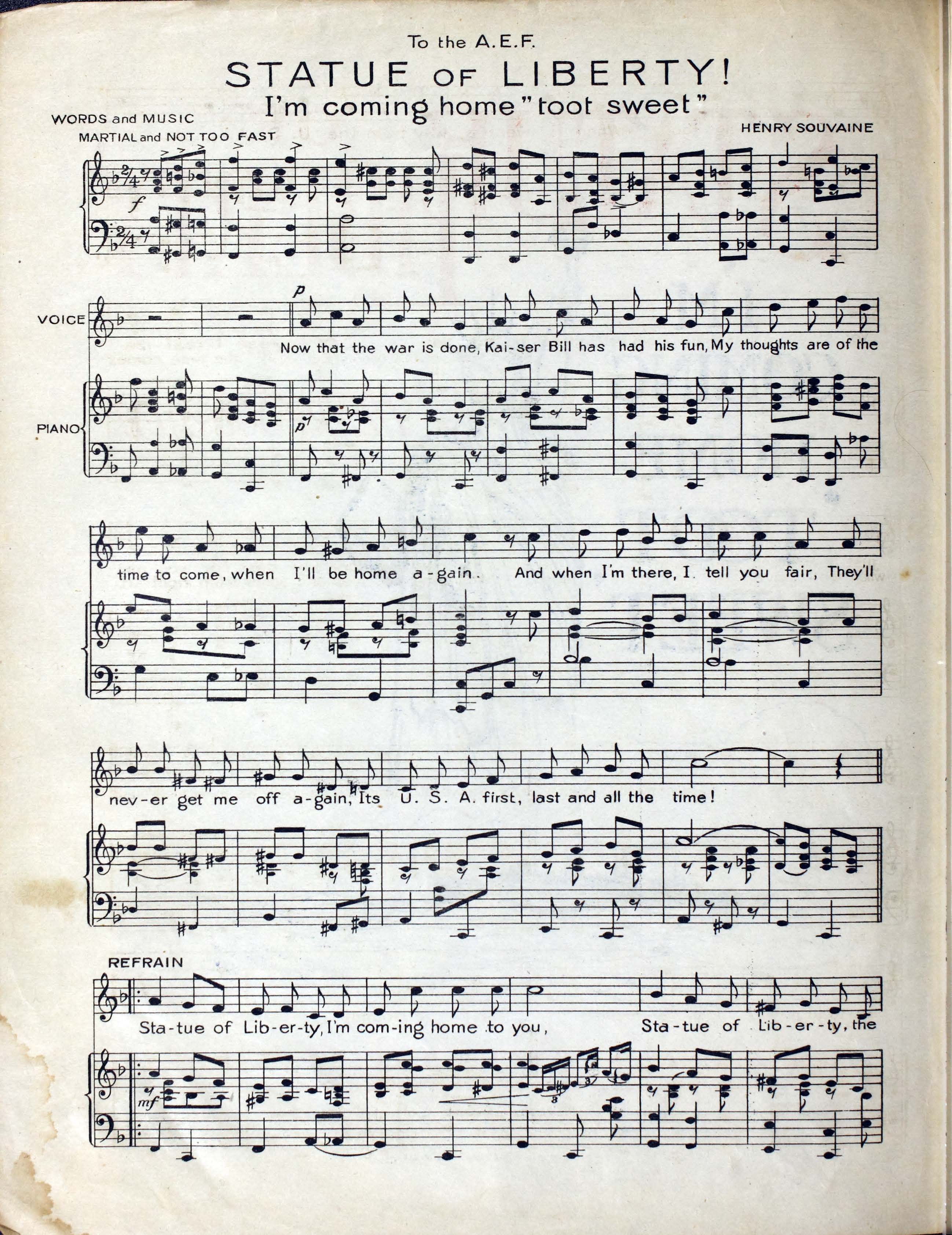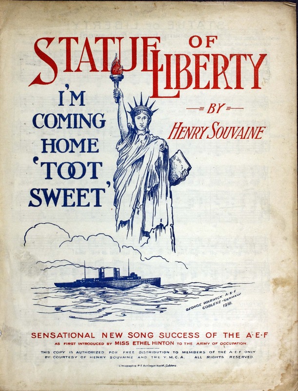 Souvaine, Henry. “Statue of Liberty : I’m Coming Home ‘toot Sweet’ By Henry Souvaine”. [S.l. : s.n.], World War I Sheet Music, accessed April 2, 2026, https://digitalexhibits.library.wustl.edu/s/wwimusic/item/36668