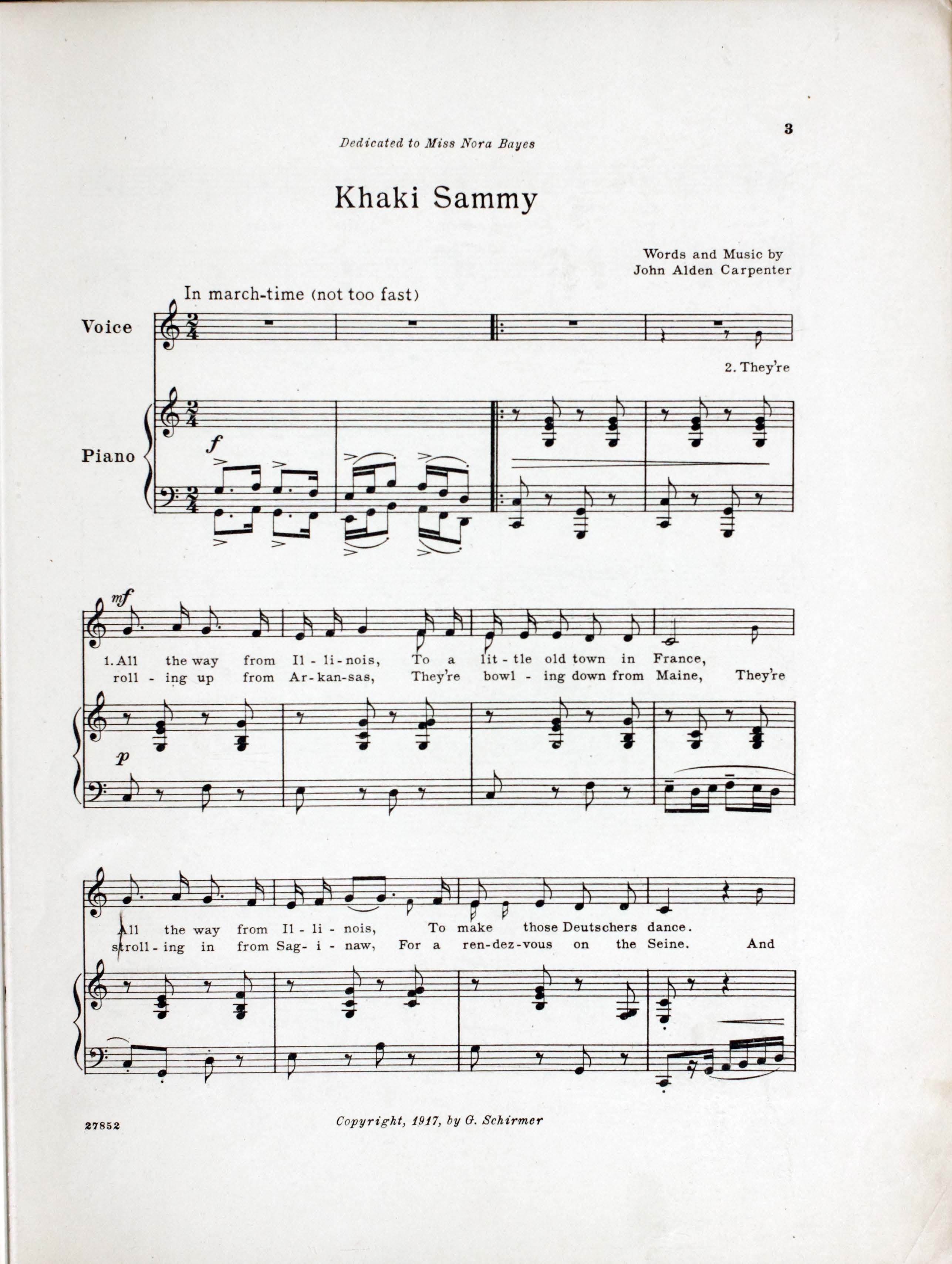 Carpenter, John Alden, 1876-1951. 2000. “Khaki Sammy Words and Music by John Alden Carpenter”. New York (3 East 43d Street) : G. Schirmer, World War I Sheet Music, accessed February 11, 2026, https://digitalexhibits.library.wustl.edu/s/wwimusic/item/36674