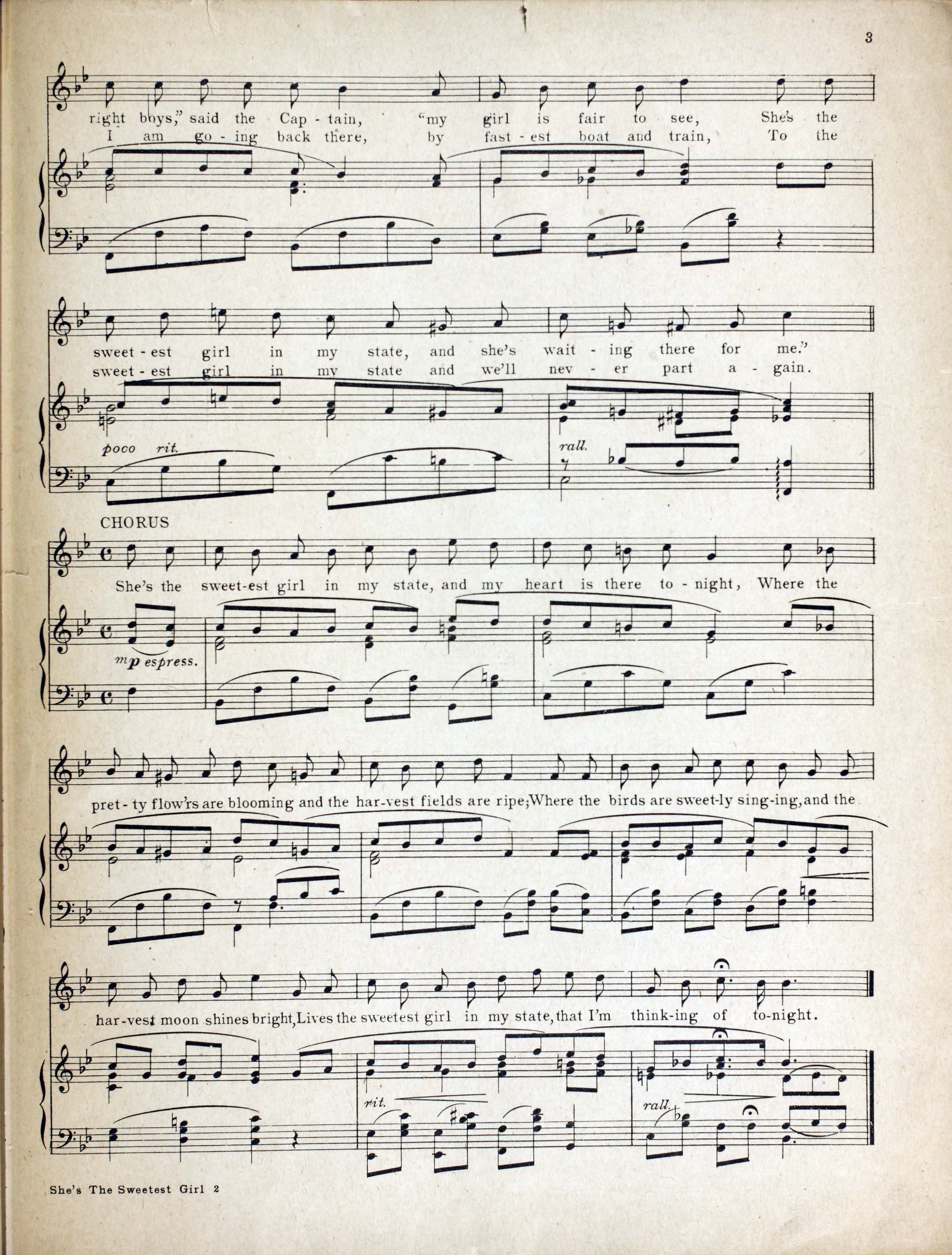 - She's the sweetest girl in my state / words by W.C. Reese ; music by E.S.S. Huntington.