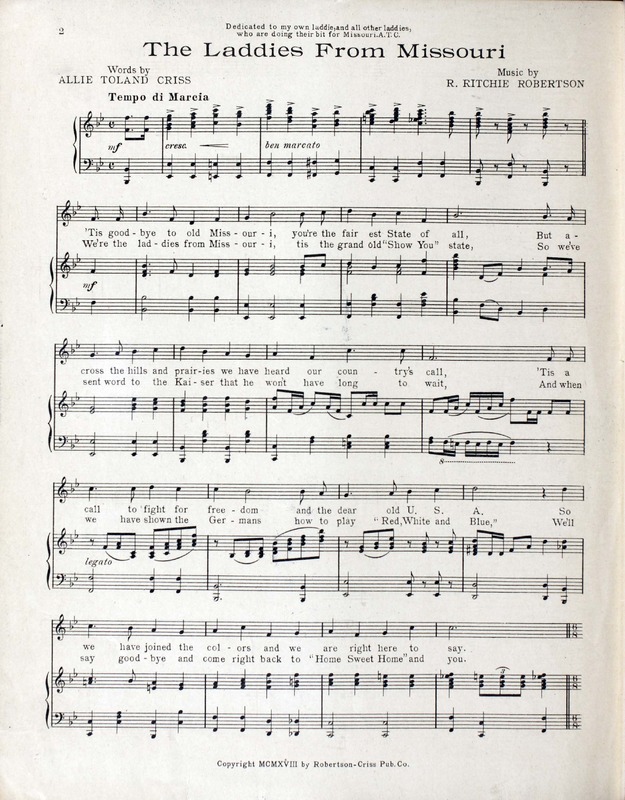The laddies from Missouri / music by R. Ritchie Robertson ; words by Allie Toland Criss.