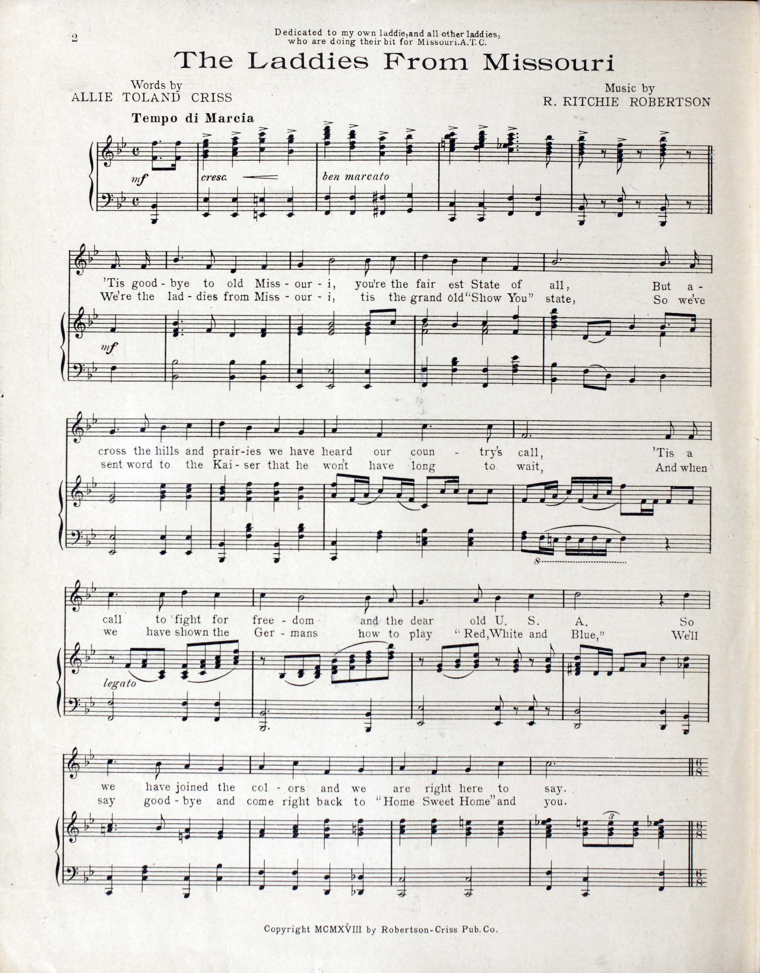- The laddies from Missouri / music by R. Ritchie Robertson ; words by Allie Toland Criss.