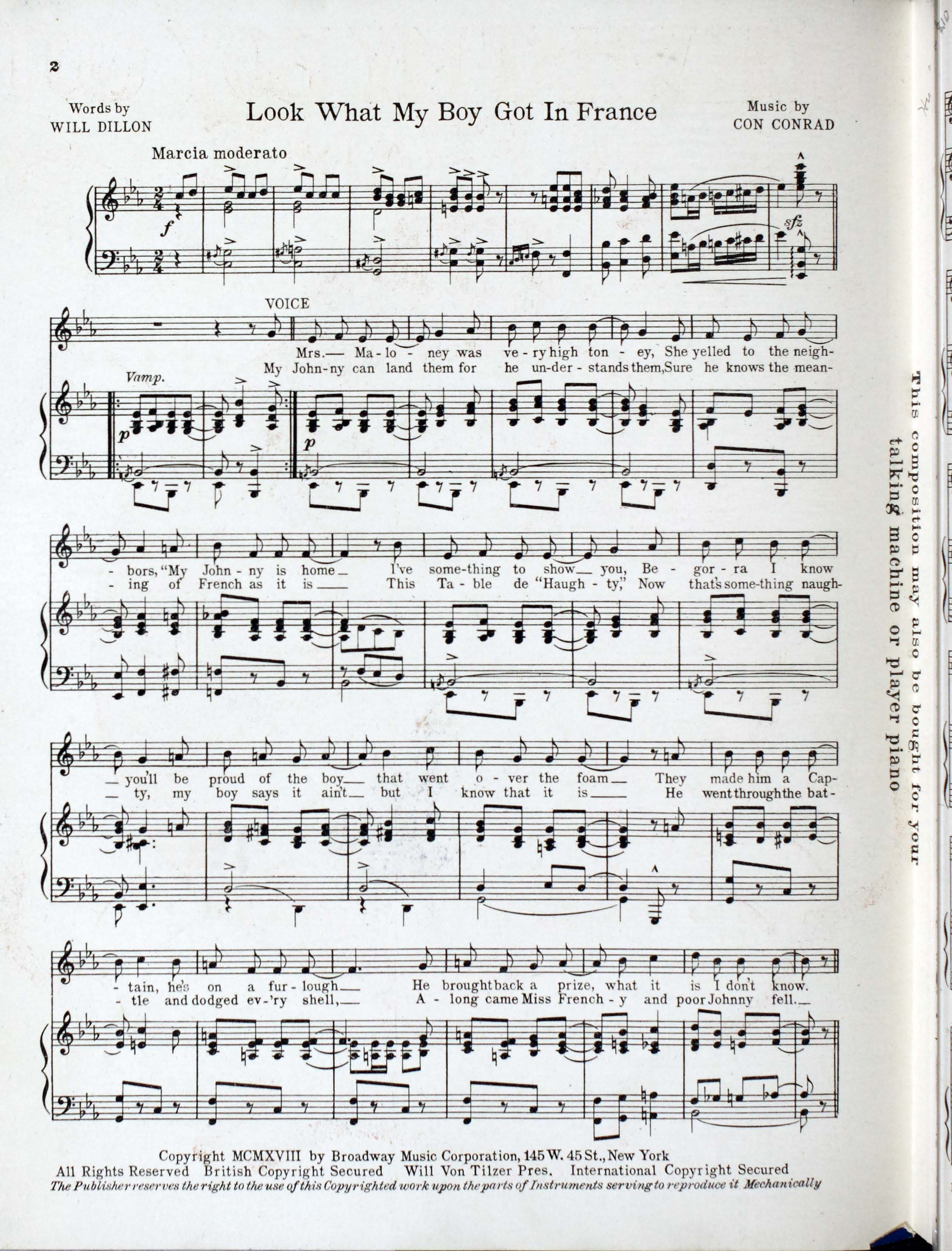 - Look what my boy got in France / words by Will Dillon ; music by Con Conrad.