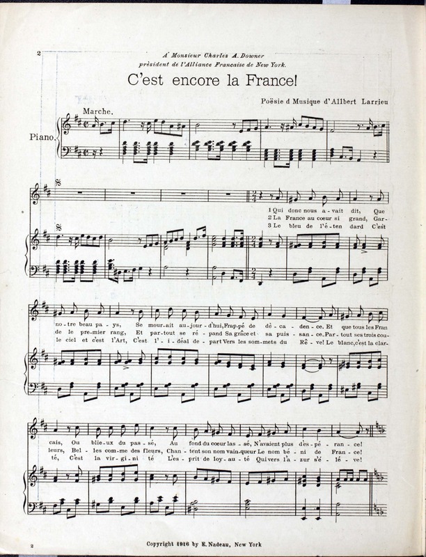 Larrieu, Albert, 1872-1925. 2000. “C’est Encore La France! Albert Larrieu”. New York : E. Nadeau, World War I Sheet Music, accessed February 11, 2026, https://digitalexhibits.library.wustl.edu/s/wwimusic/item/36714