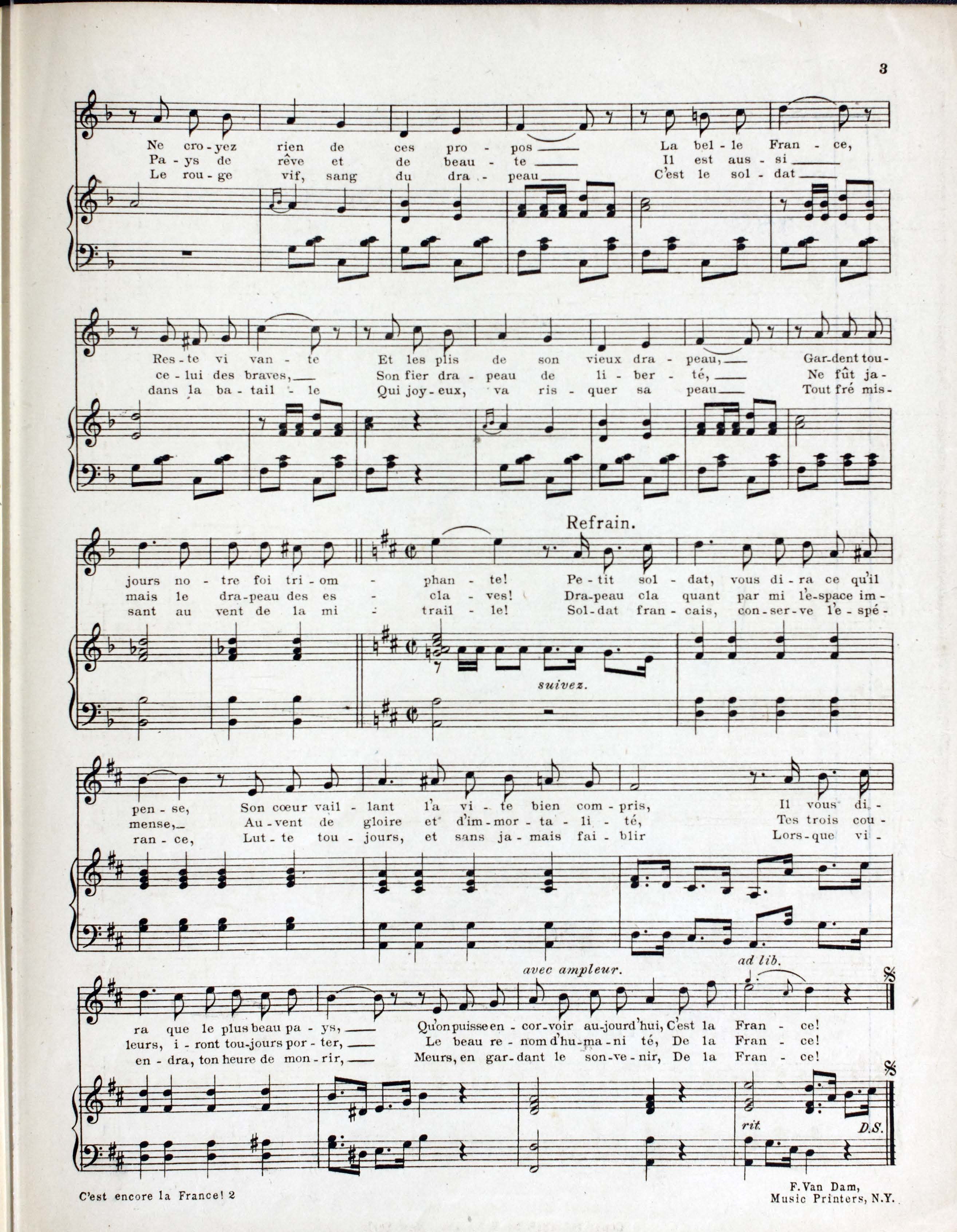 - "F. Van Dam, music printers, N.Y."--At end of music.