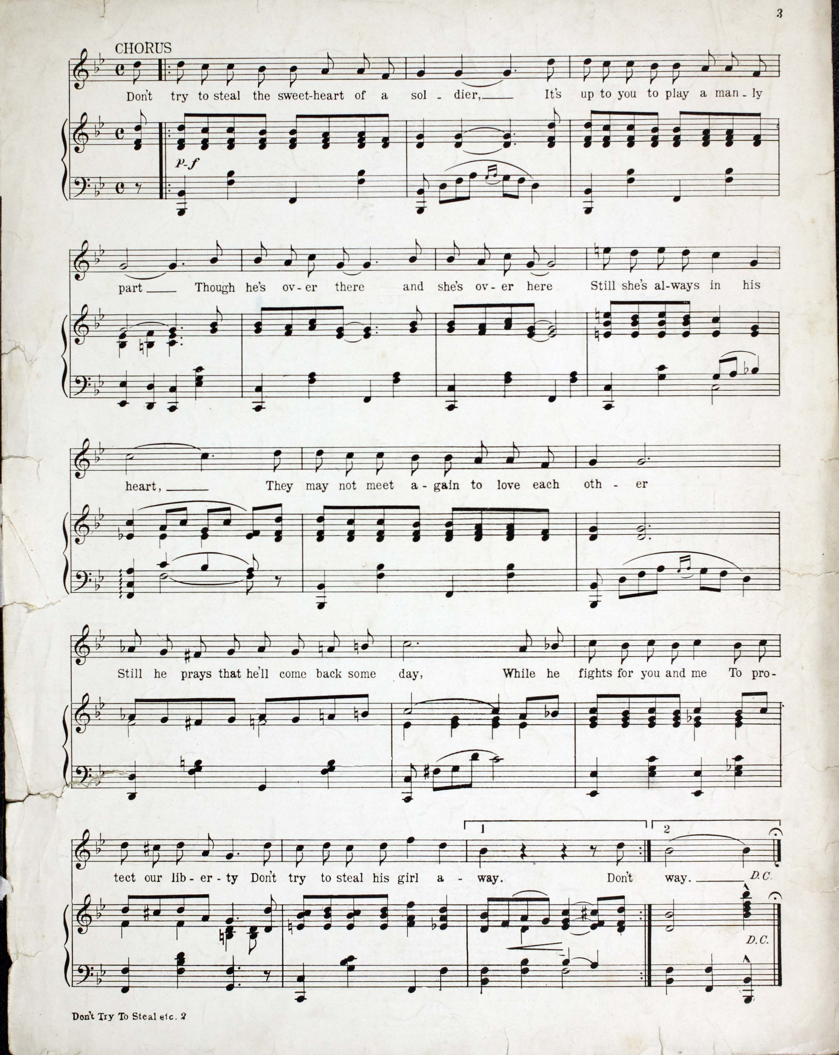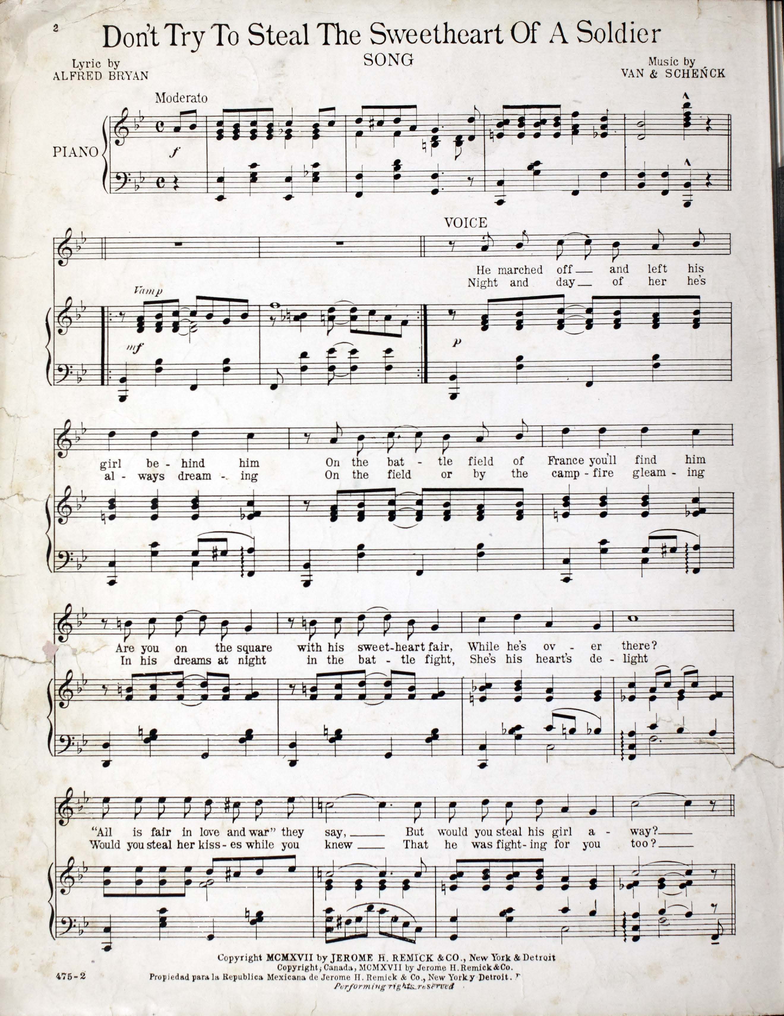 - Don't try to steal the sweetheart of a soldier : song / lyric by Alfred Bryan ; music by Van and Schenk.