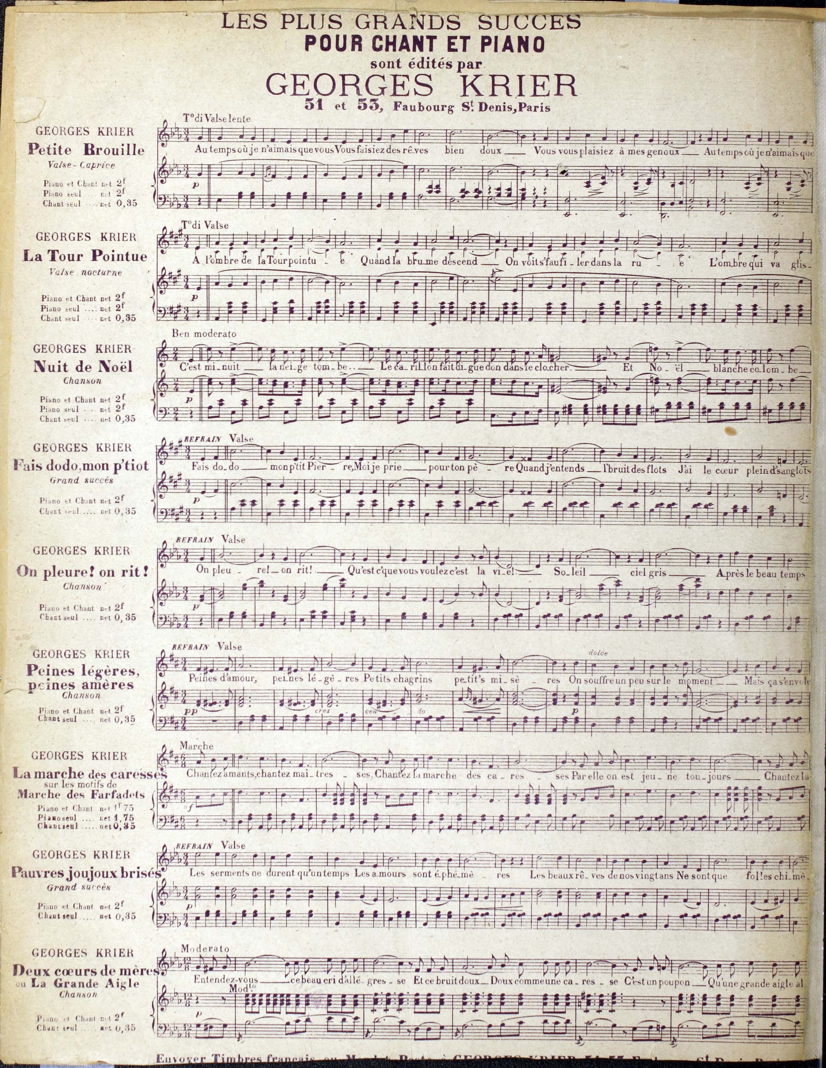 - Paris (51-53 Faubourg, St-Denis) : Georges Krier, editeur