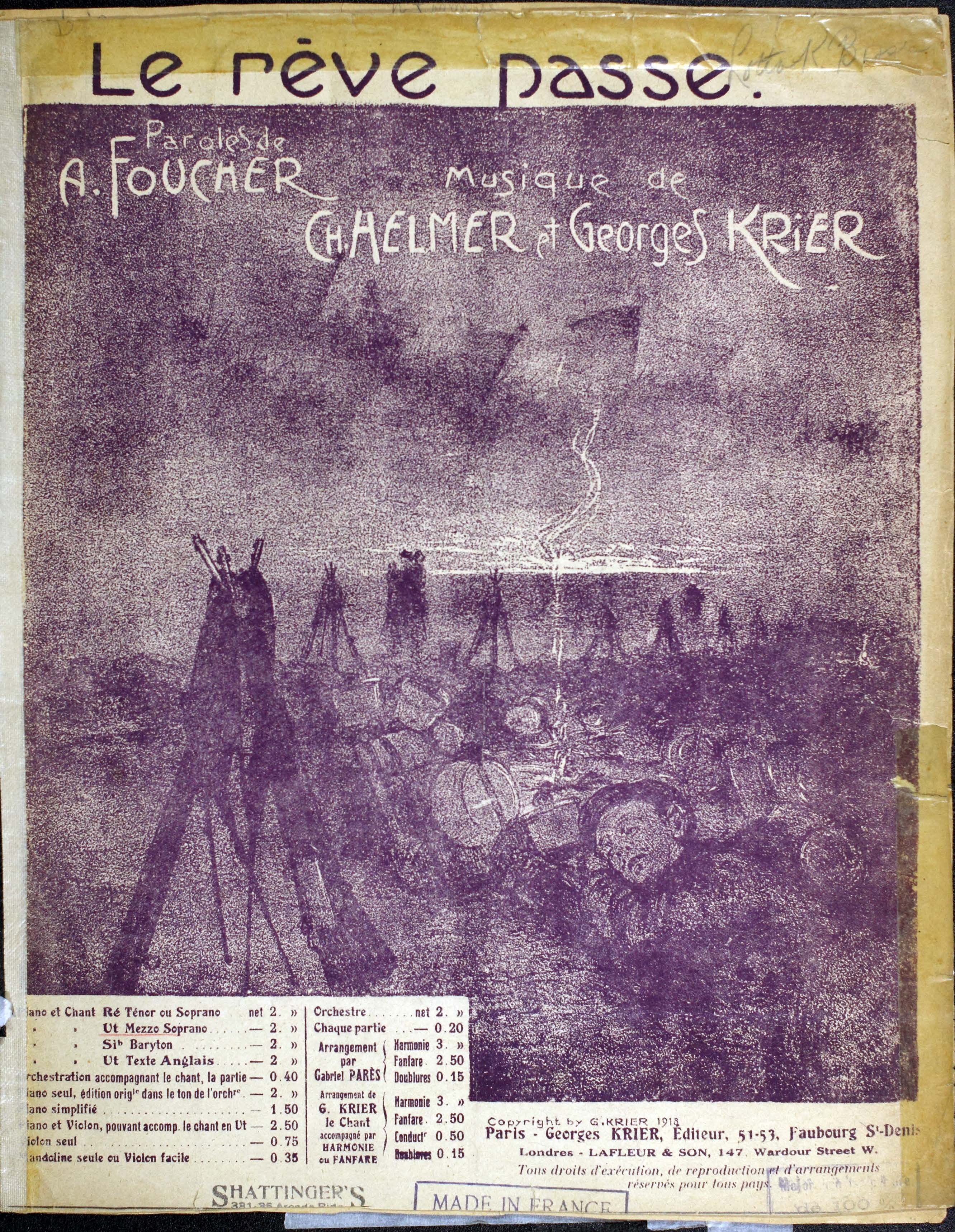 Helmer, Ch. 2000. “Le Rêve Passe Paroles De A. Foucher ; Musique De Ch. Helmer Et Georges Krier”. Paris (51-53 Faubourg, St-Denis) : Georges Krier, editeur, World War I Sheet Music, accessed February 11, 2026, https://digitalexhibits.library.wustl.edu/s/wwimusic/item/36958