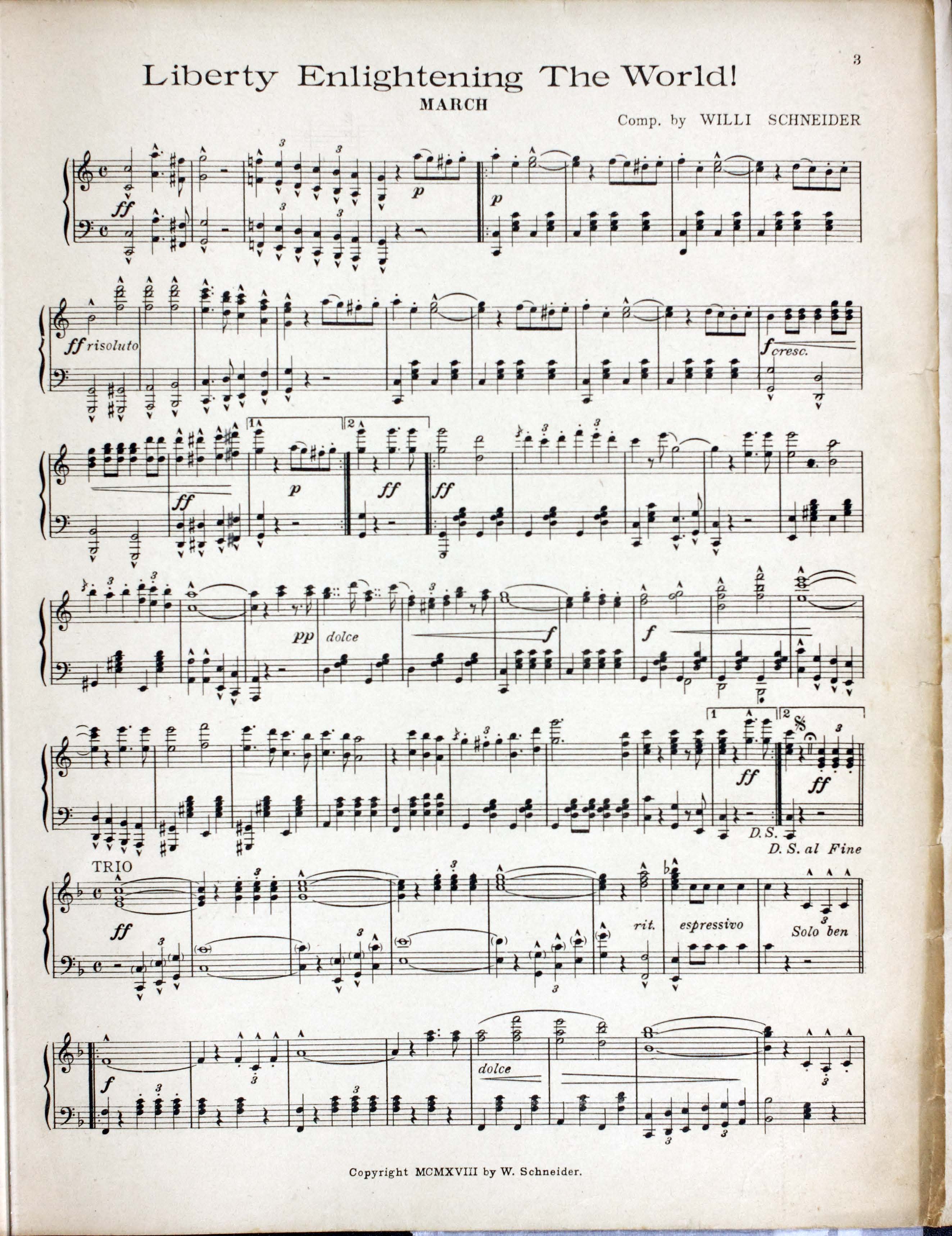 Schneider, Wm. 2000. “Liberty Enlightening the World! : March By Wm. Schneider”. Waterloo, Ill. : Wm. Schneider, World War I Sheet Music, accessed February 11, 2026, https://digitalexhibits.library.wustl.edu/s/wwimusic/item/36960