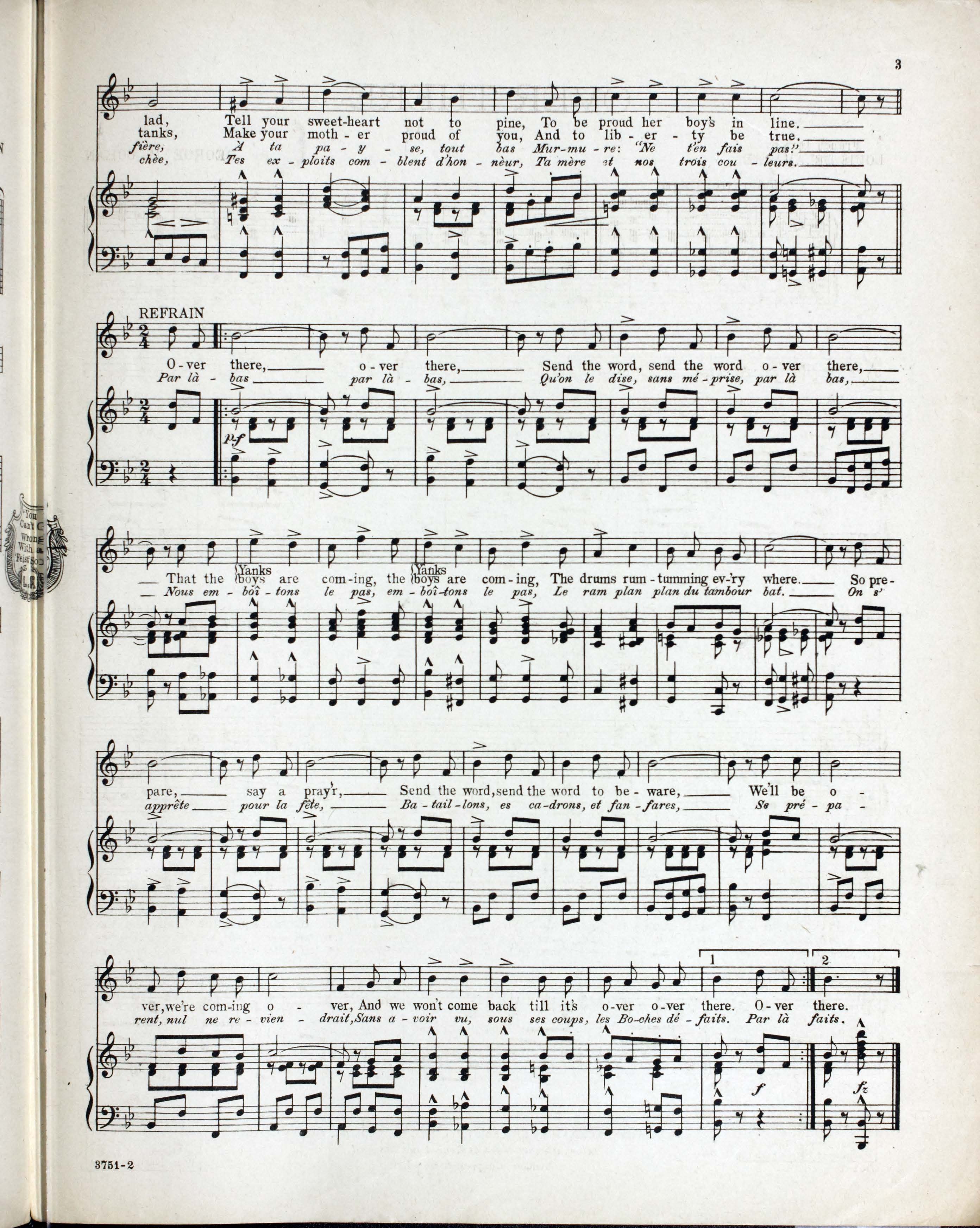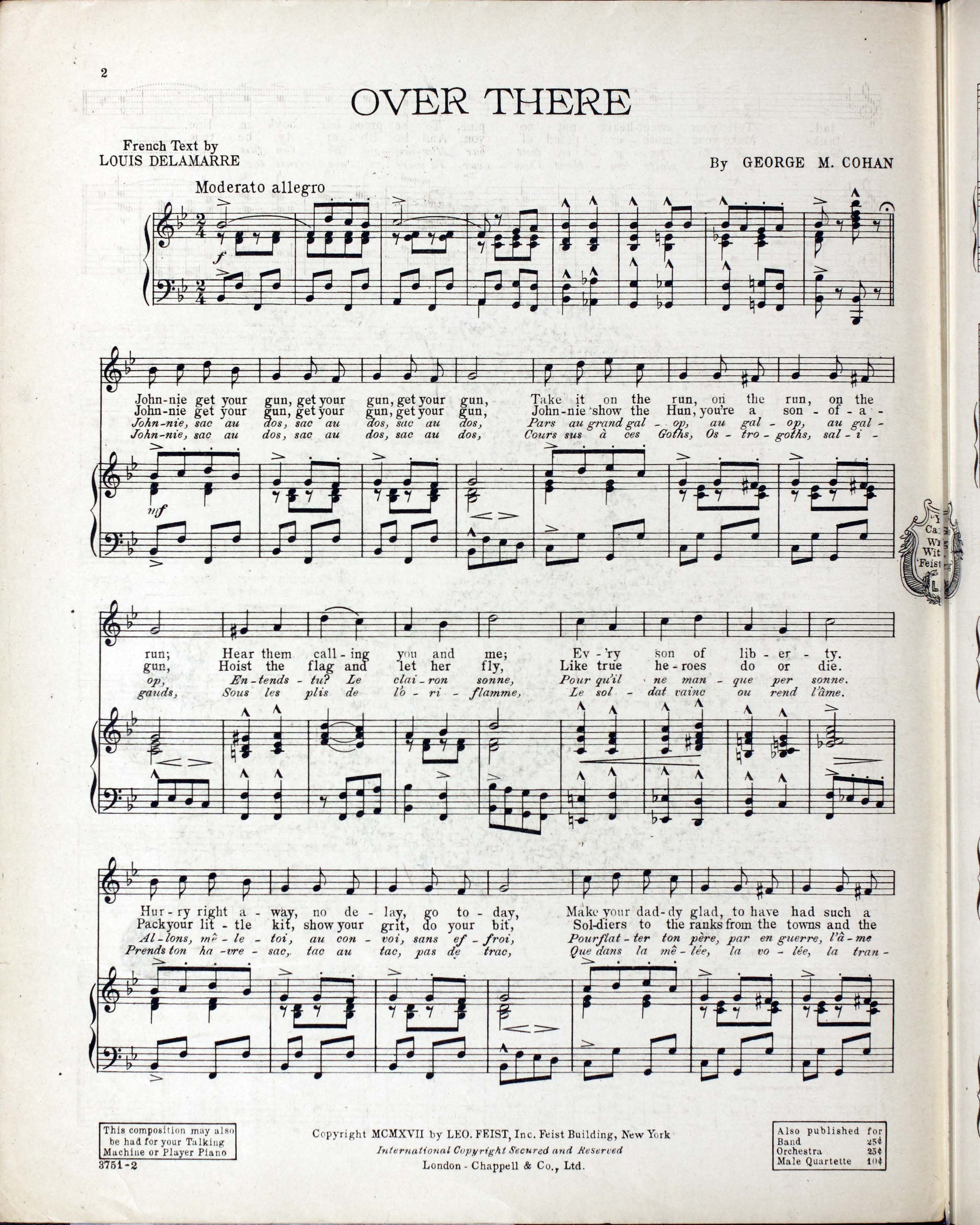 Cohan, George M. (George Michael), 1878-1942. 2000. “Over There Words and Music by George M. Cohan”. New York : Leo Feist, Inc, World War I Sheet Music, accessed March 28, 2026, https://digitalexhibits.library.wustl.edu/s/wwimusic/item/36963