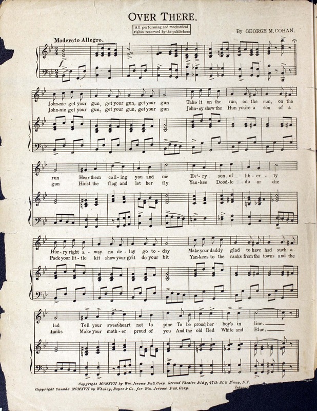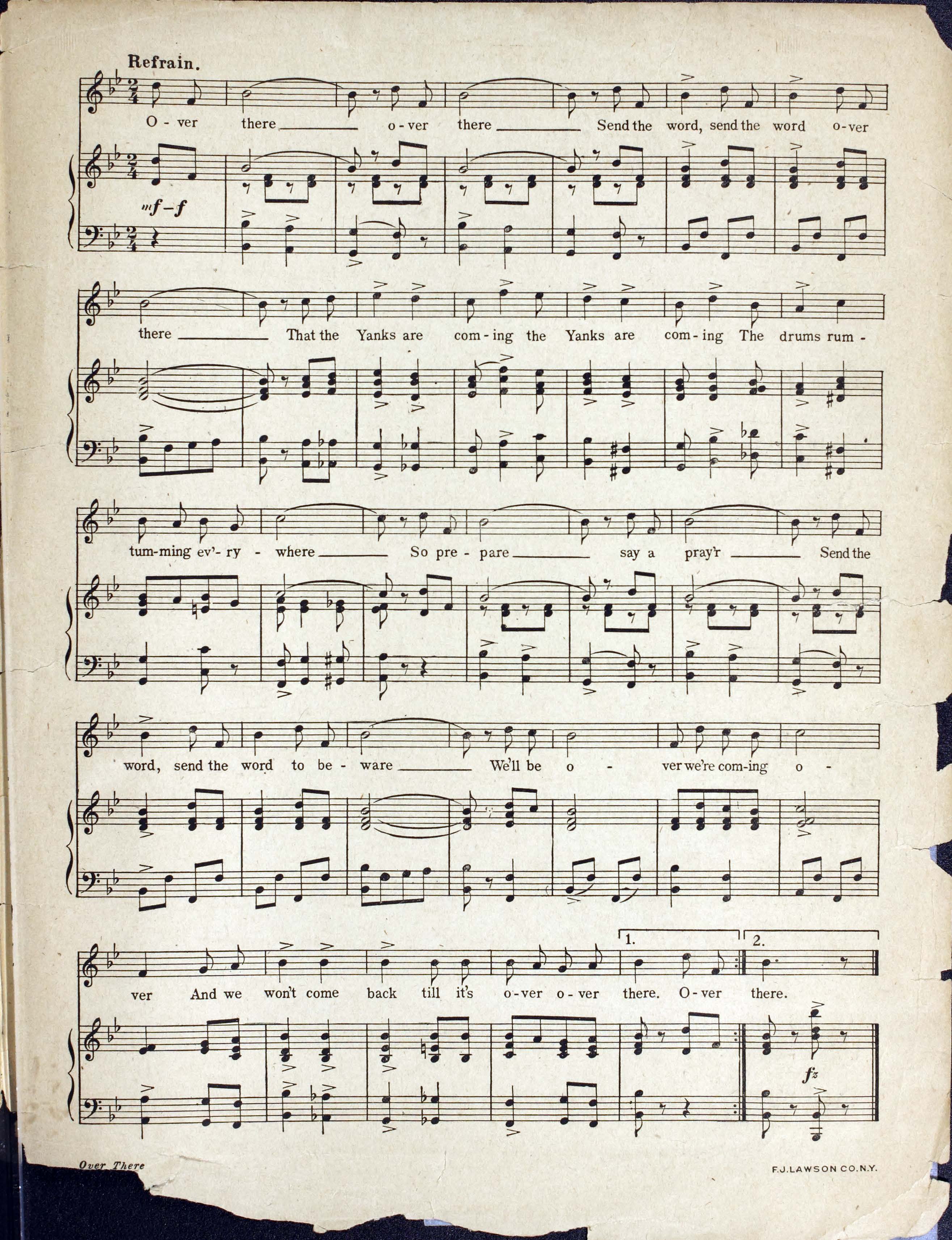 Cohan, George M. (George Michael), 1878-1942. 2000. “Over There By Geo. M. Cohan”. New York (Strand Theatre Bldg., 47th St.-B-way) : William Jerome Publishing Corporation, World War I Sheet Music, accessed February 11, 2026, https://digitalexhibits.library.wustl.edu/s/wwimusic/item/36965