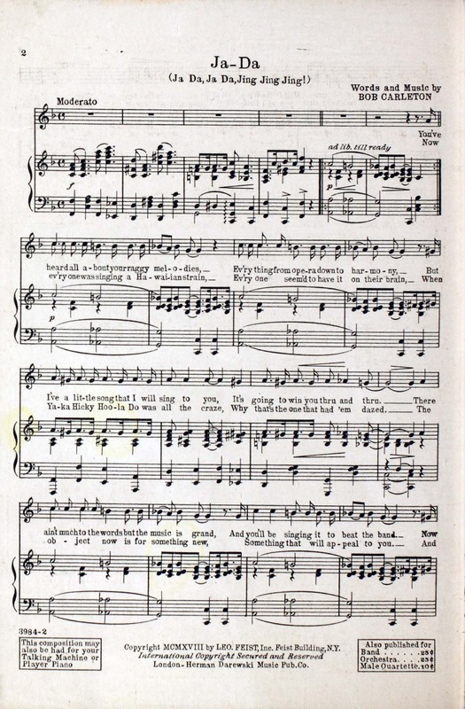 Carleton, Bob, 1896-1956. 2000. “Ja-Da By Bob Carleton, U.S.N.R.F”. New York : Leo Feist, Inc, World War I Sheet Music, accessed February 11, 2026, https://digitalexhibits.library.wustl.edu/s/wwimusic/item/36967