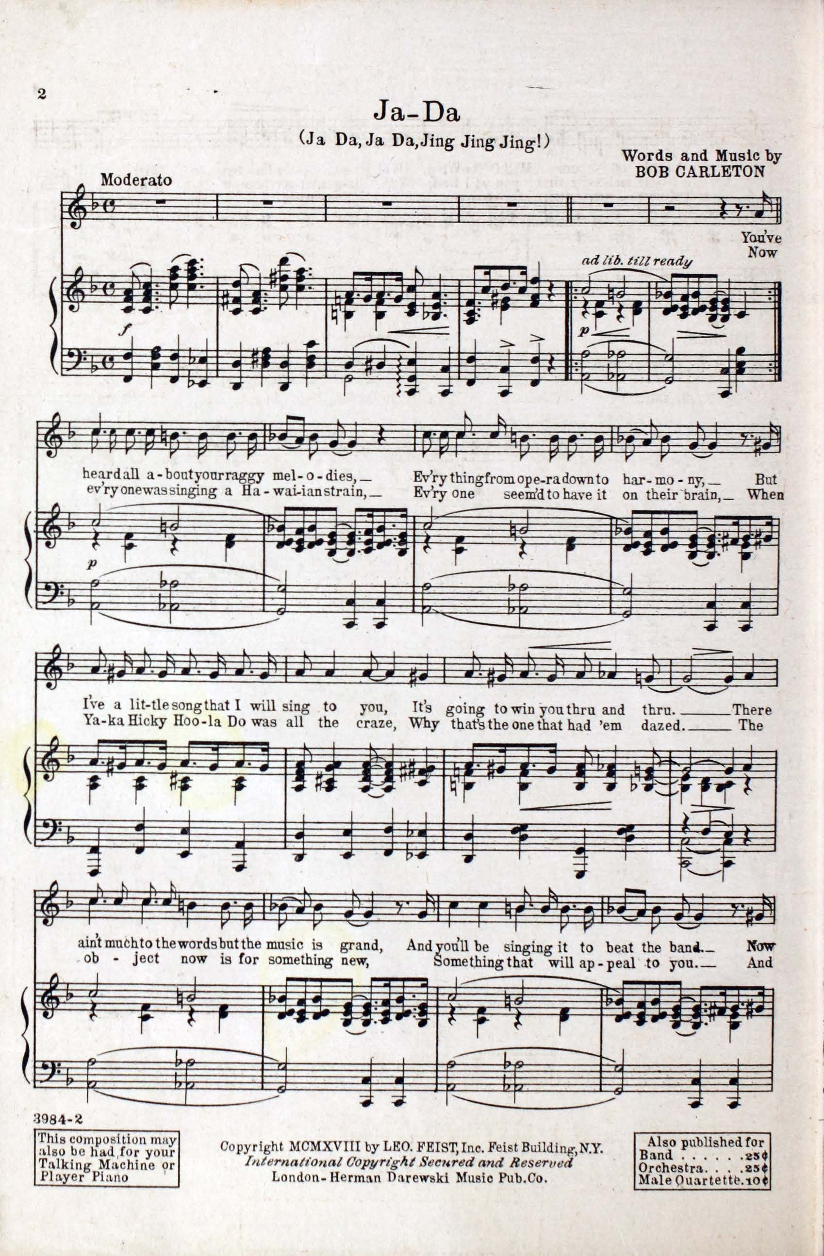 - Plate number -- 3984-2, Leo Feist, Inc.