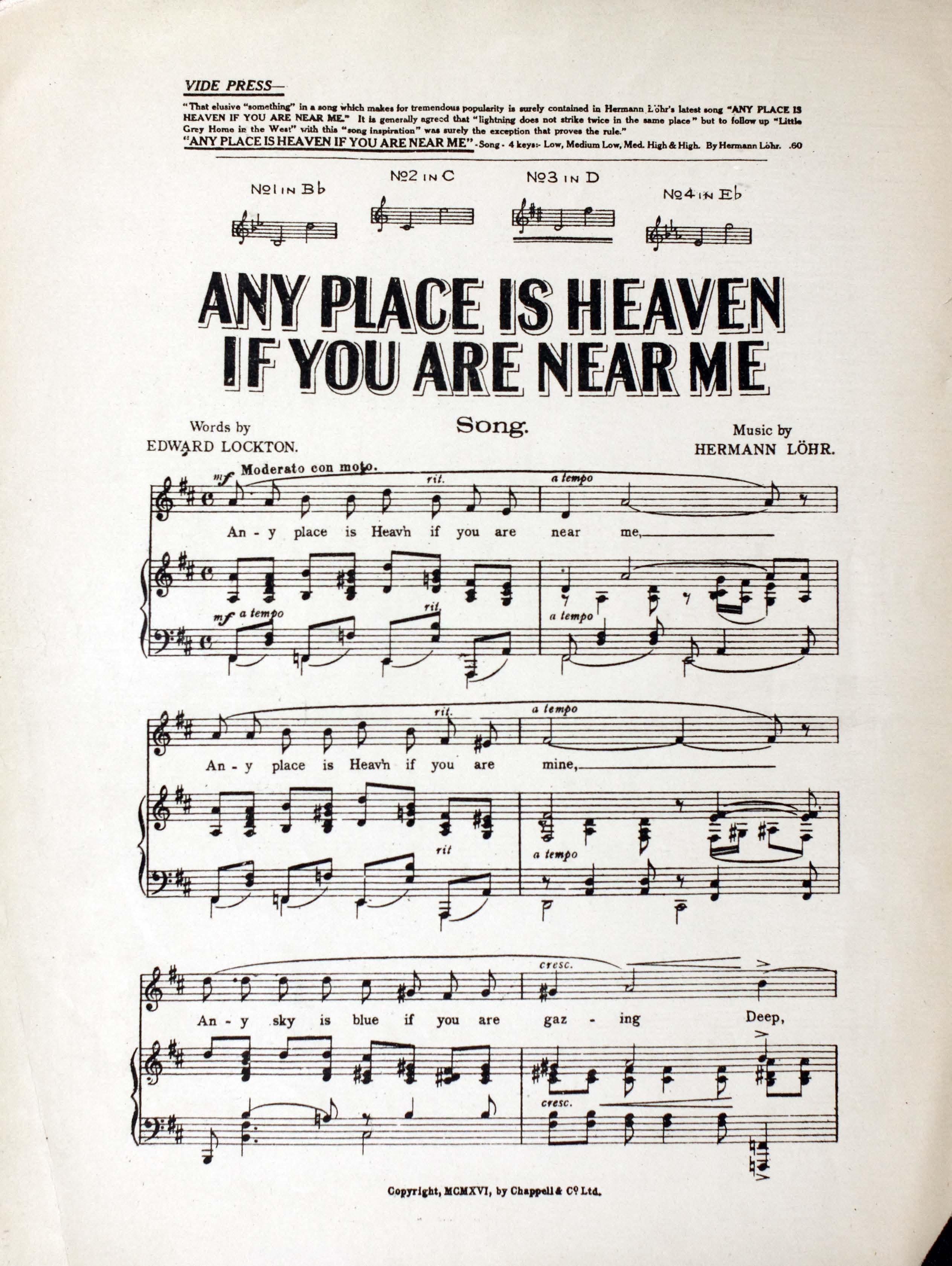 - New York (41 East Thirty-fourth Street, New York) : Chappell & Co. Ltd.