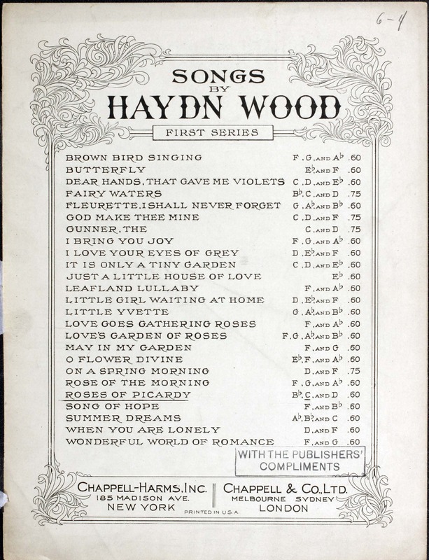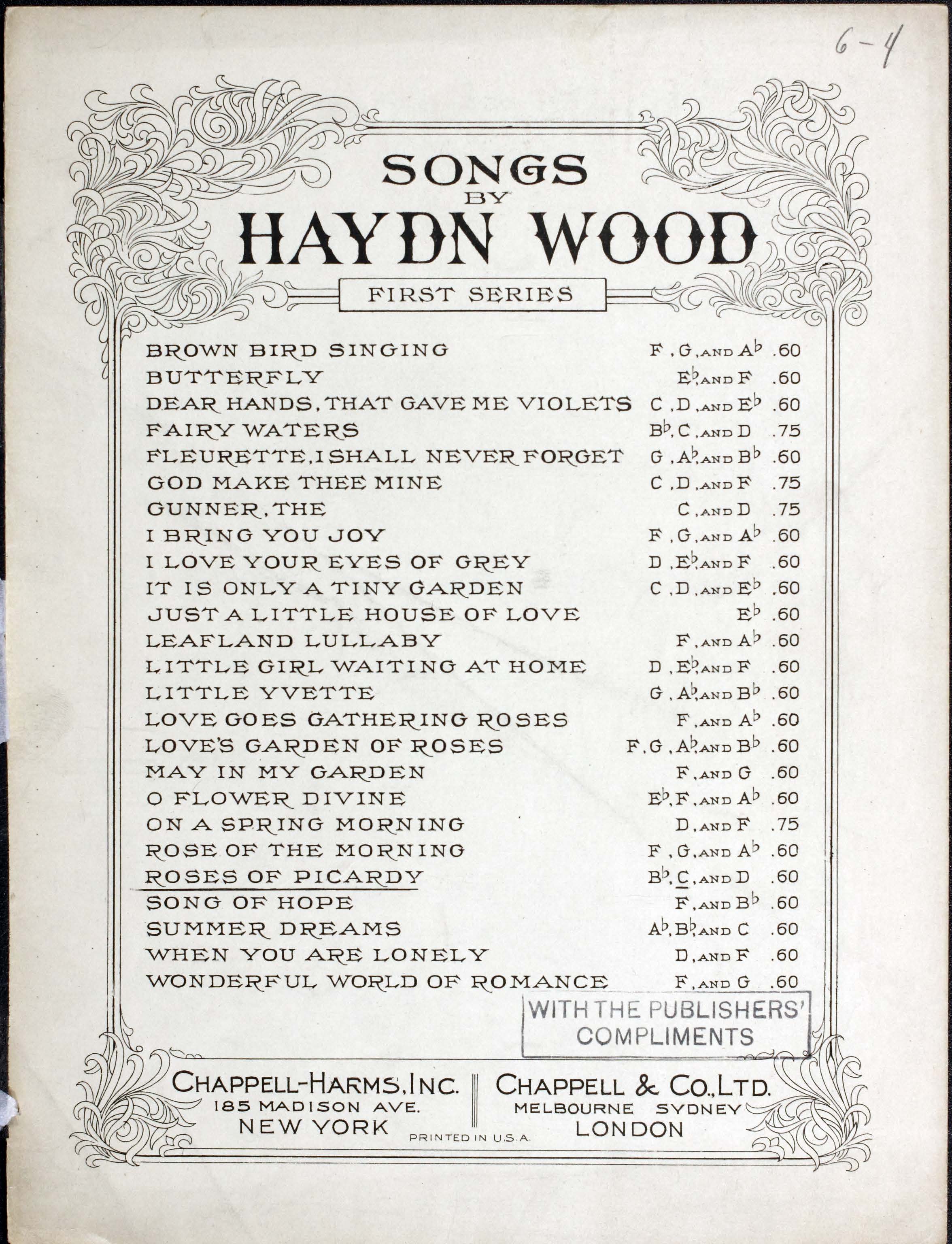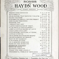 - Variant t.p. on one copy: List t.p. with series title "Songs by Haydn Wood, first series"