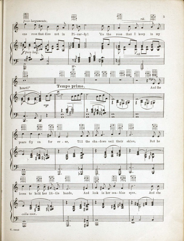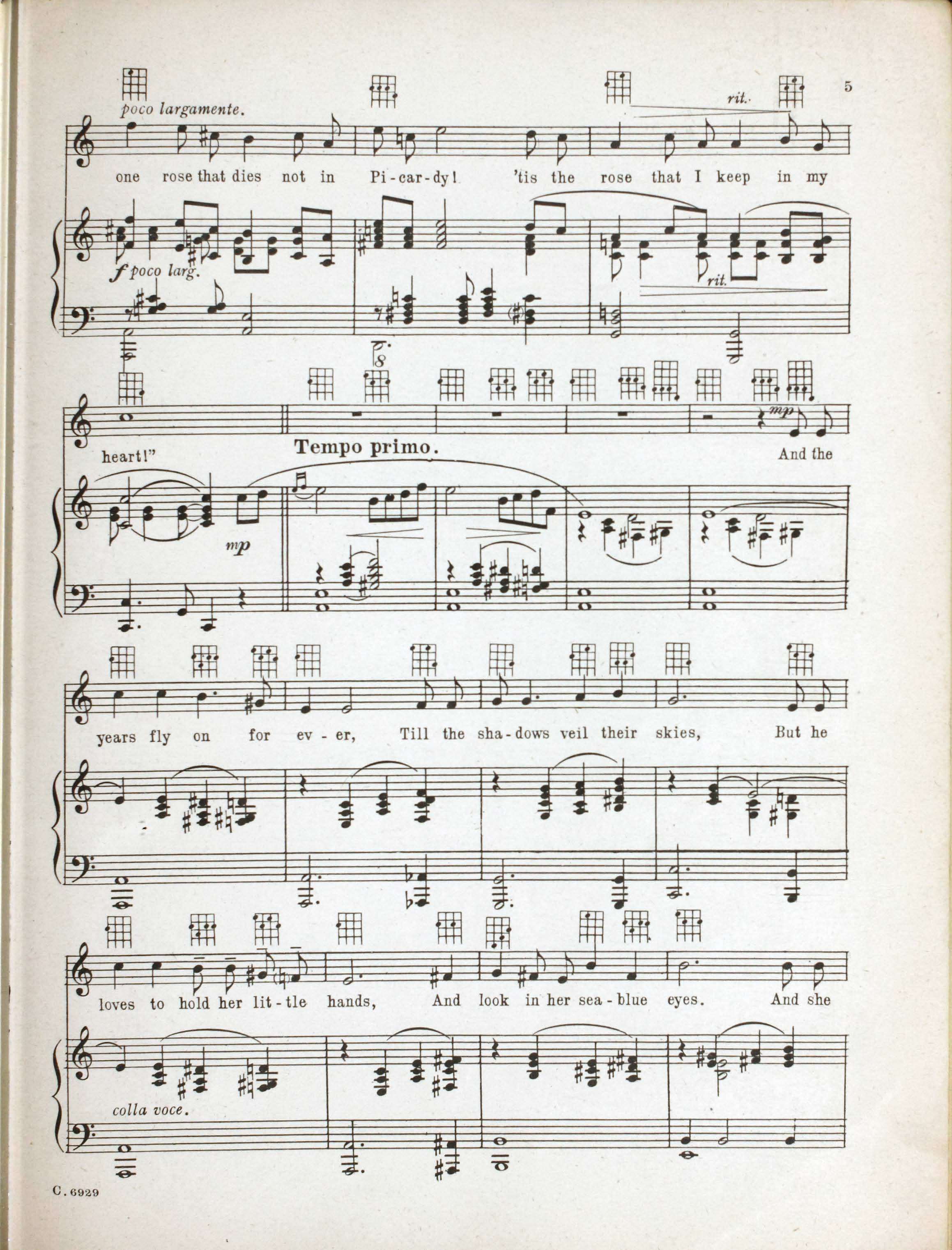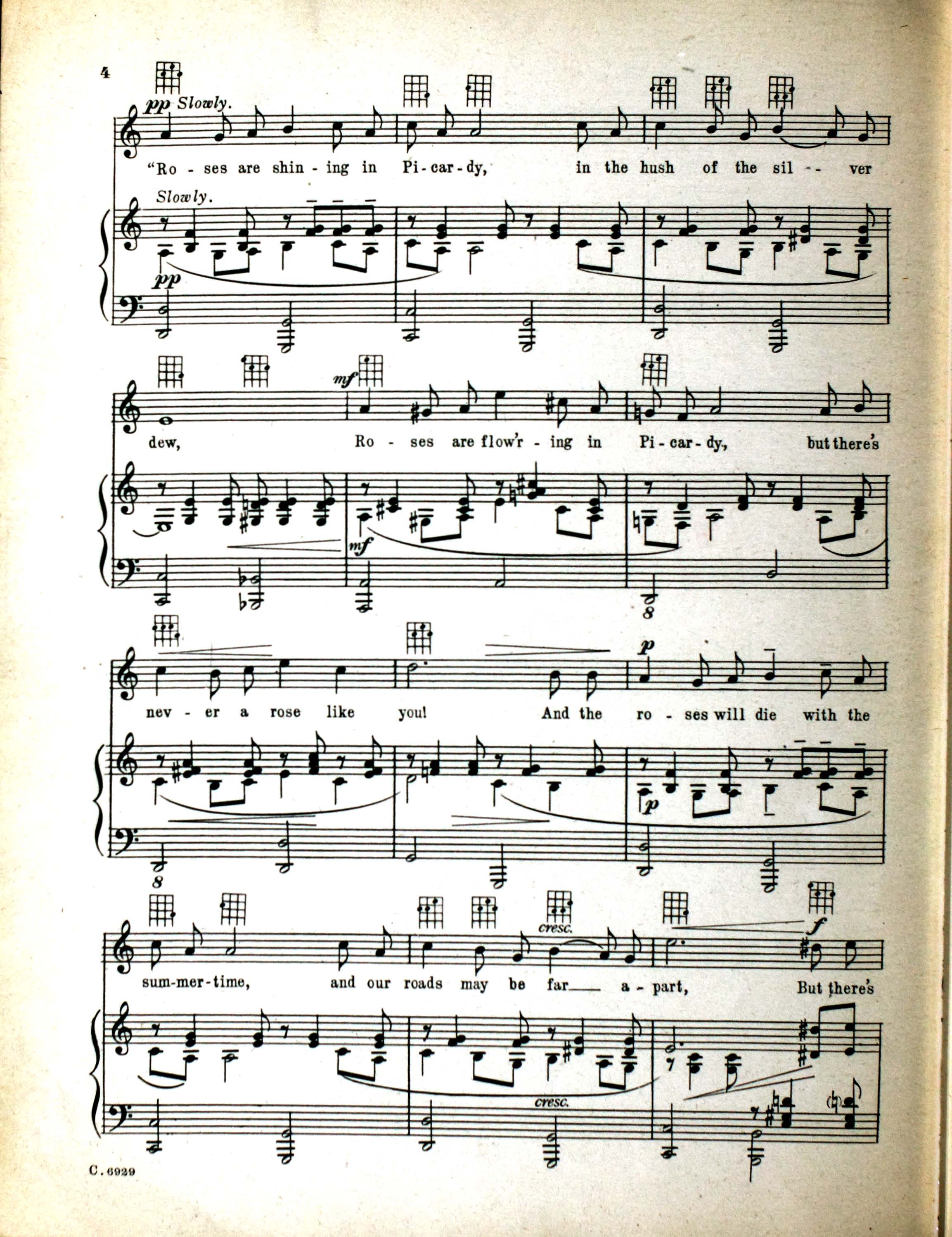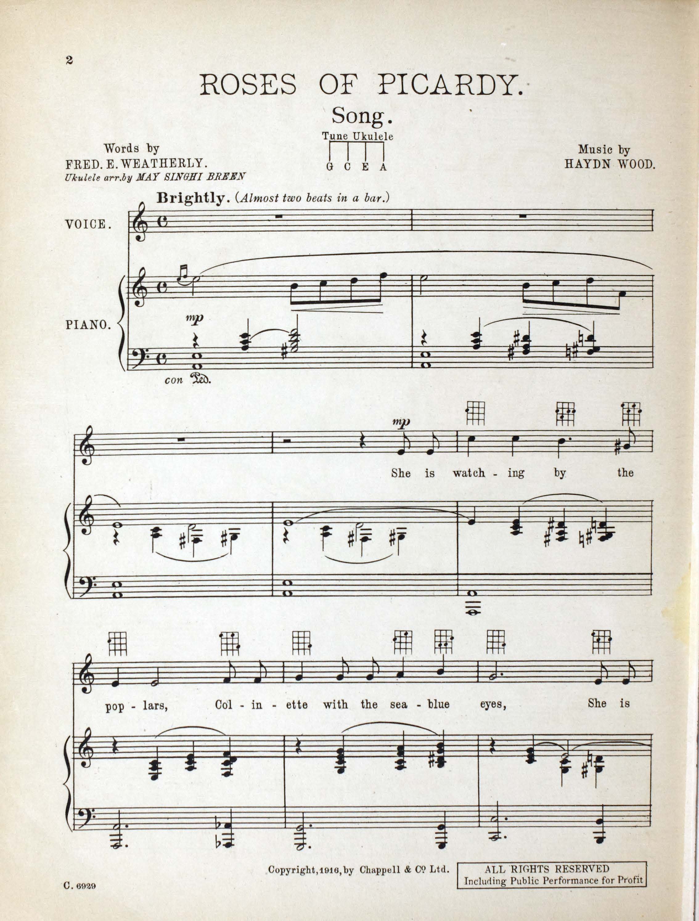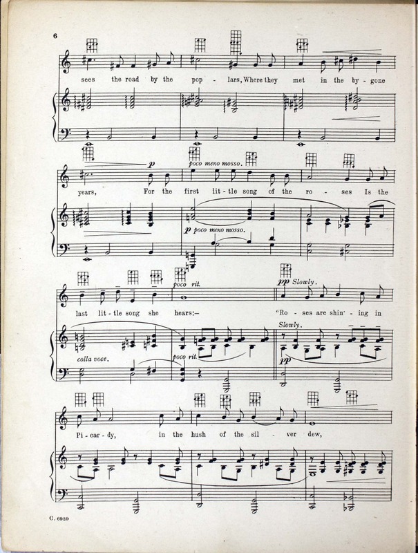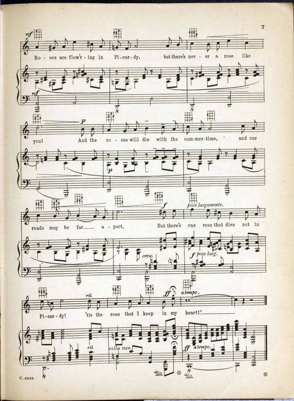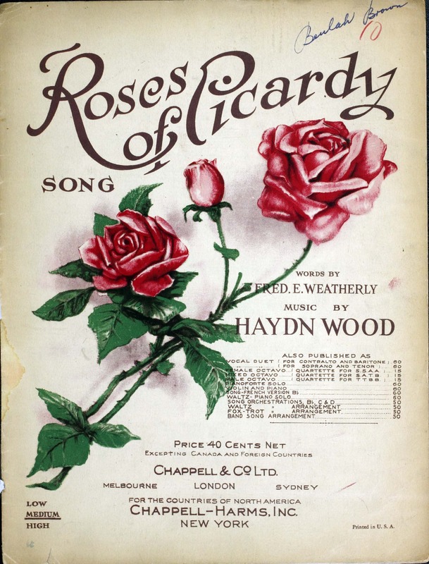 Wood, Haydn, 1882-1959. 2000. “Roses of Picardy : Song Words by Fred. E. Weatherly ; Music by Haydn Wood”. New York : Chappell-Harms, Inc, World War I Sheet Music, accessed March 28, 2026, https://digitalexhibits.library.wustl.edu/s/wwimusic/item/36974