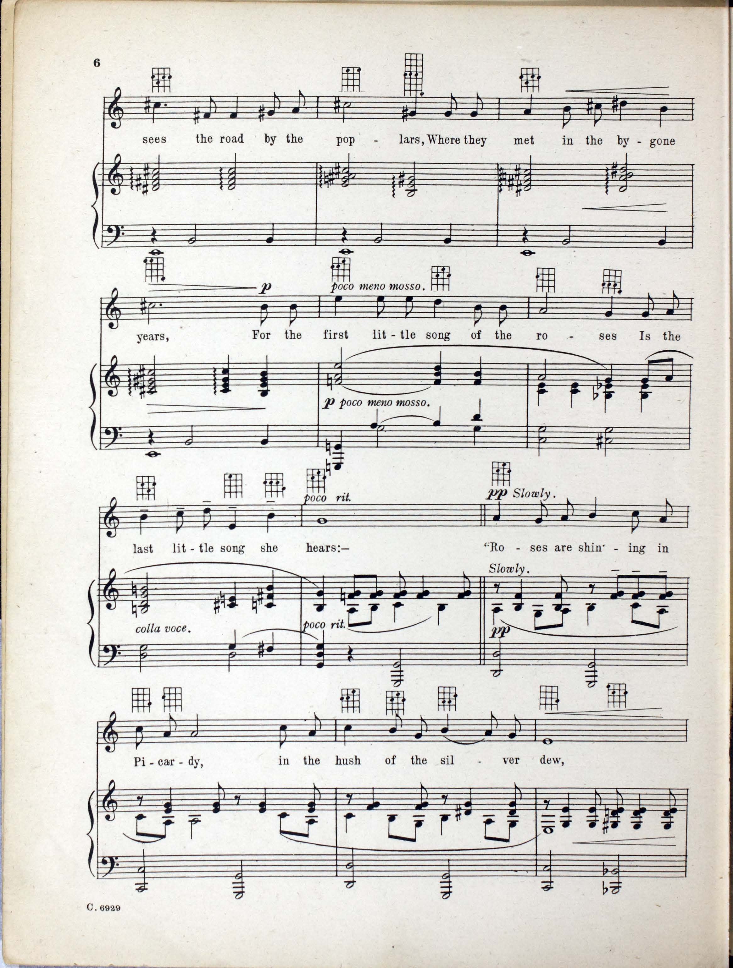 - Roses of Picardy : song / words by Fred. E. Weatherly ; music by Haydn Wood.