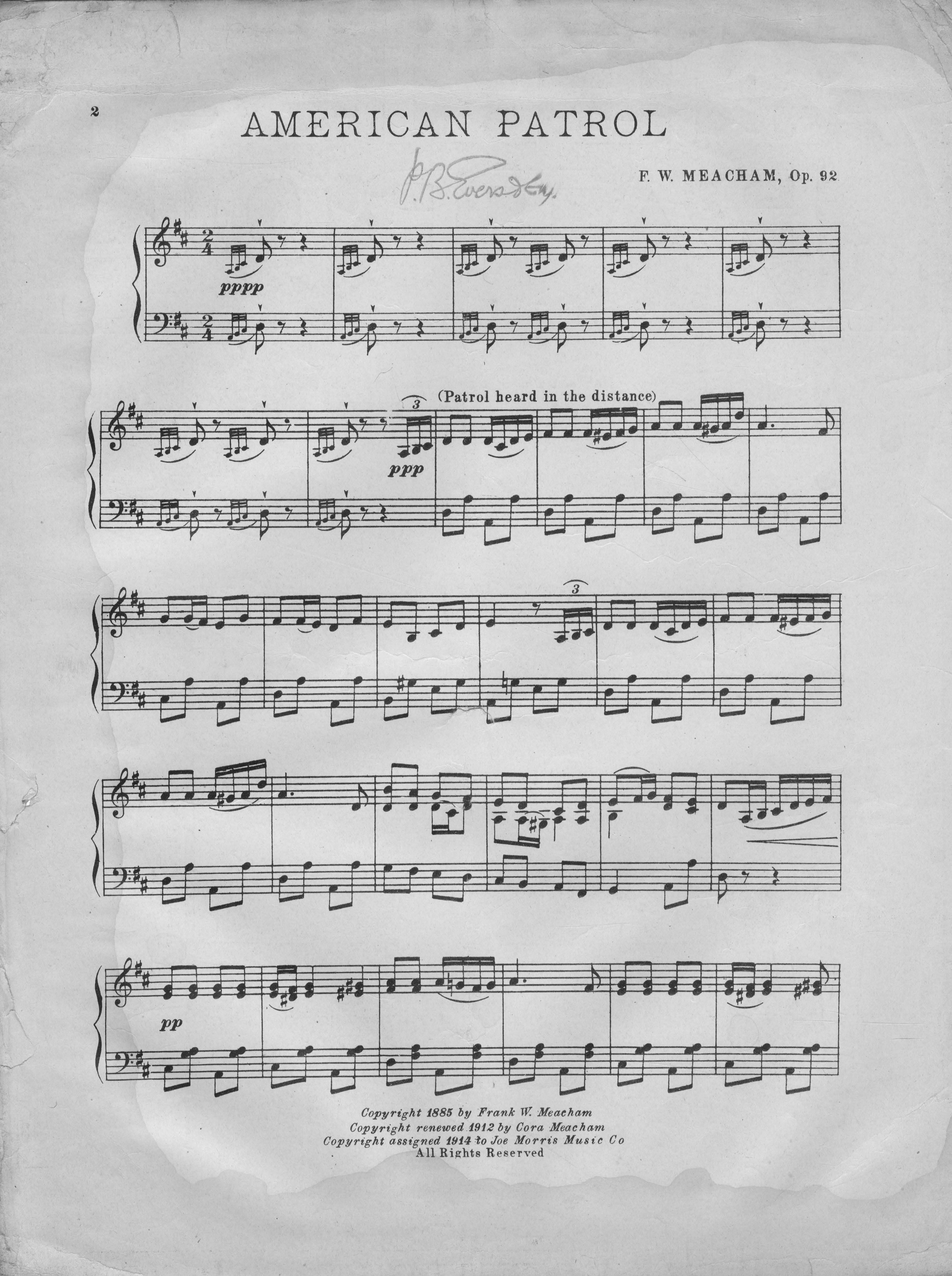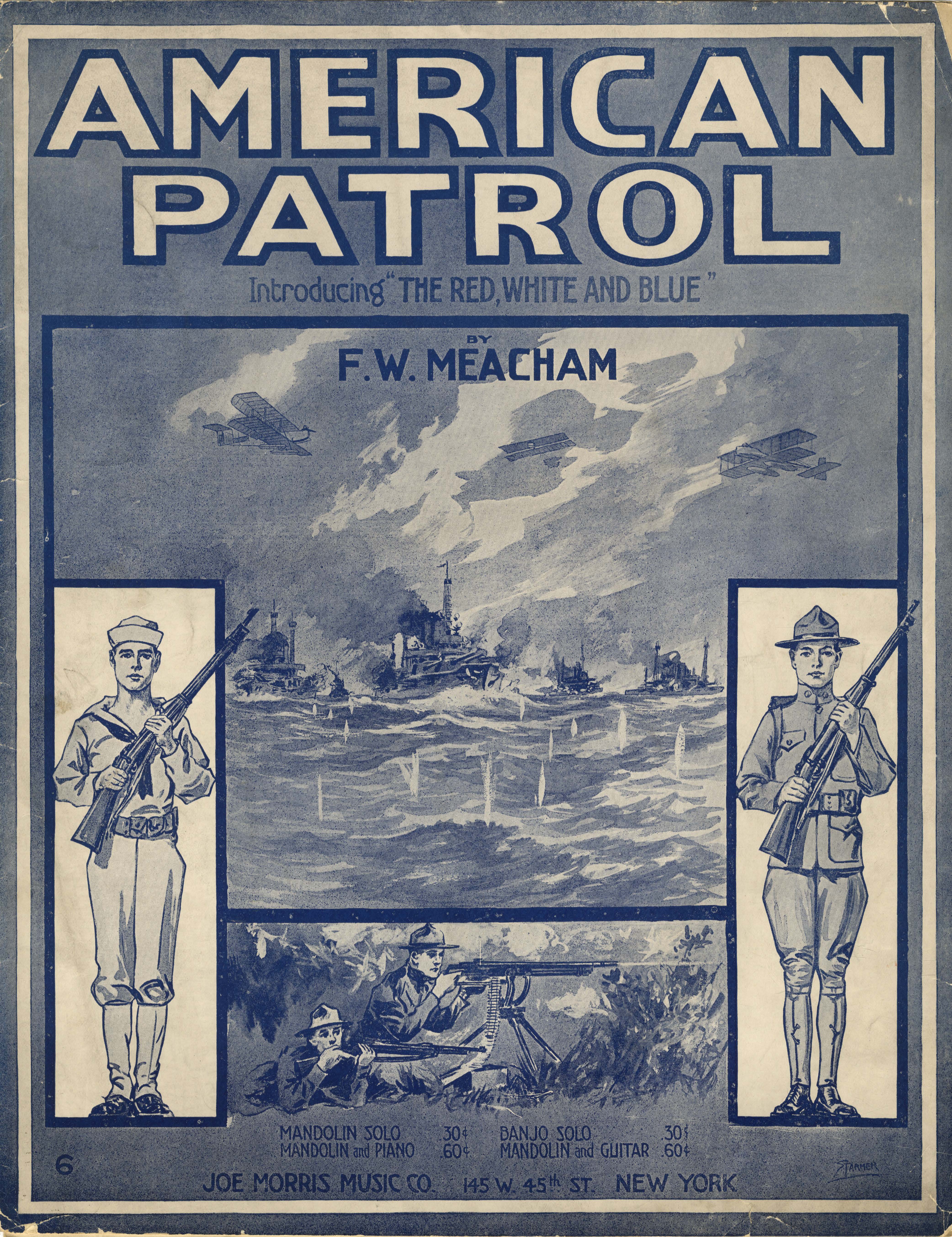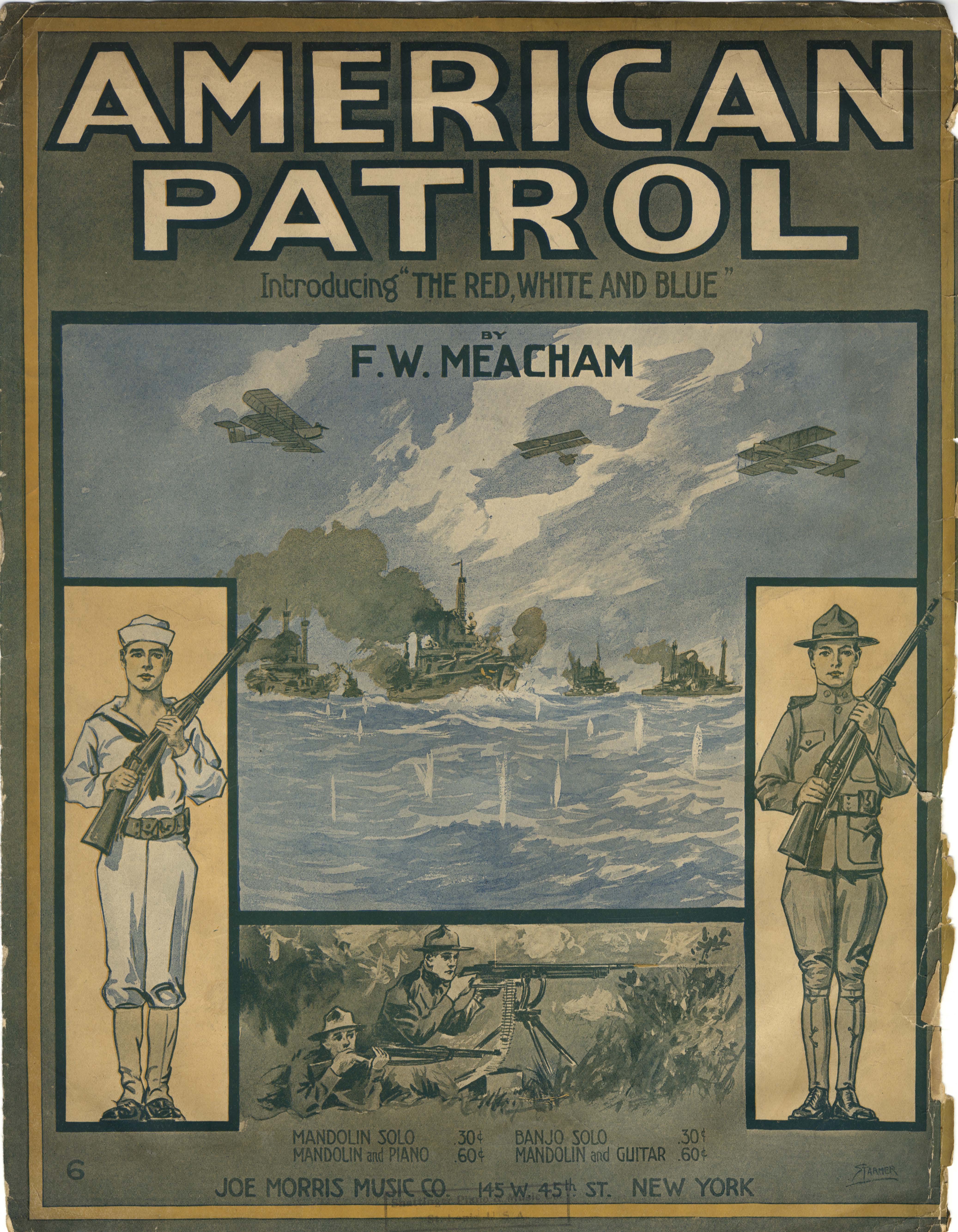 Meacham, F. W. 2000. “American Patrol : Introducing ‘The Red, White, and Blue’ By F.W. Meacham”. New York (145 W. 45th St.) : Joe Morris Music Co, World War I Sheet Music, accessed March 28, 2026, https://digitalexhibits.library.wustl.edu/s/wwimusic/item/37740