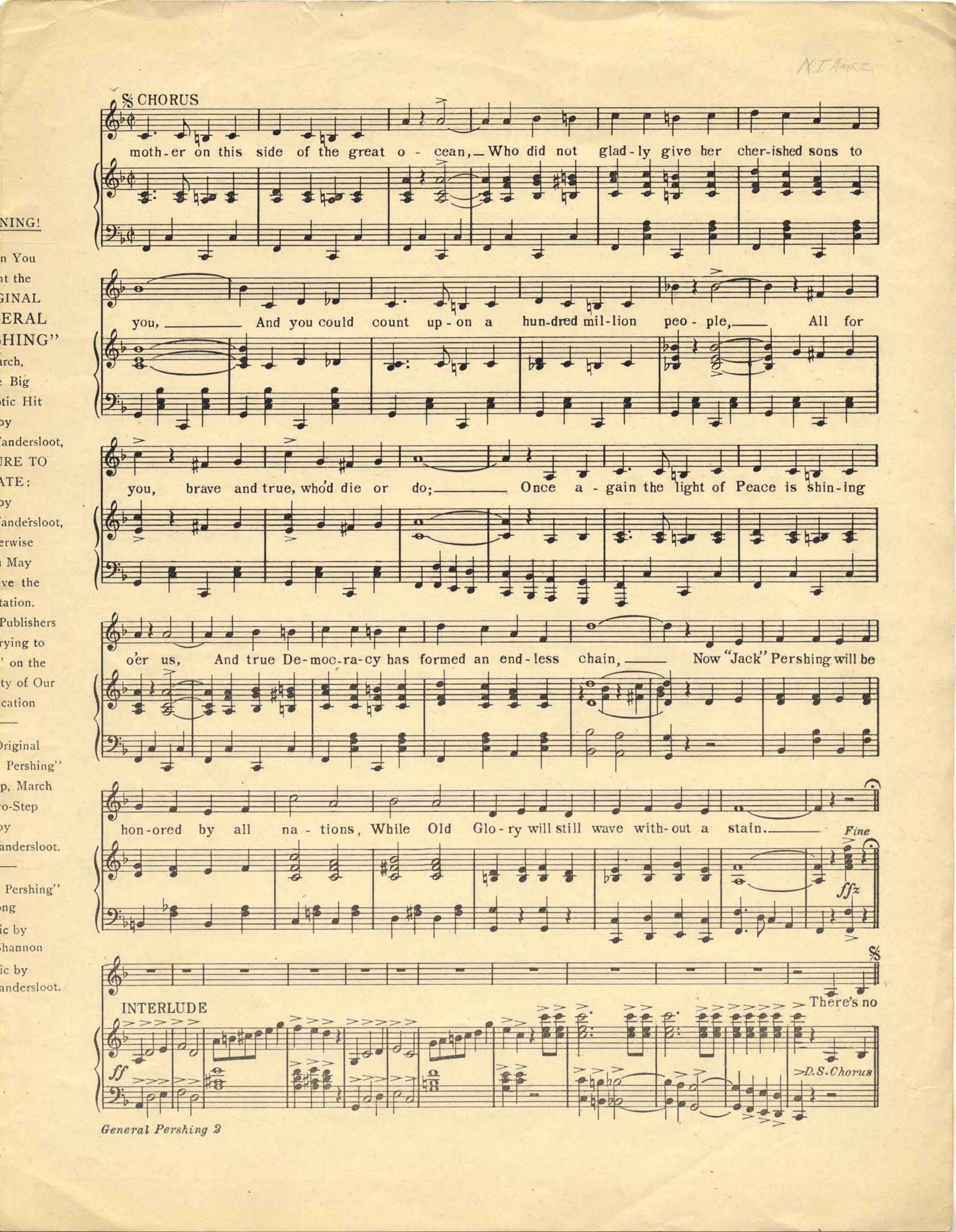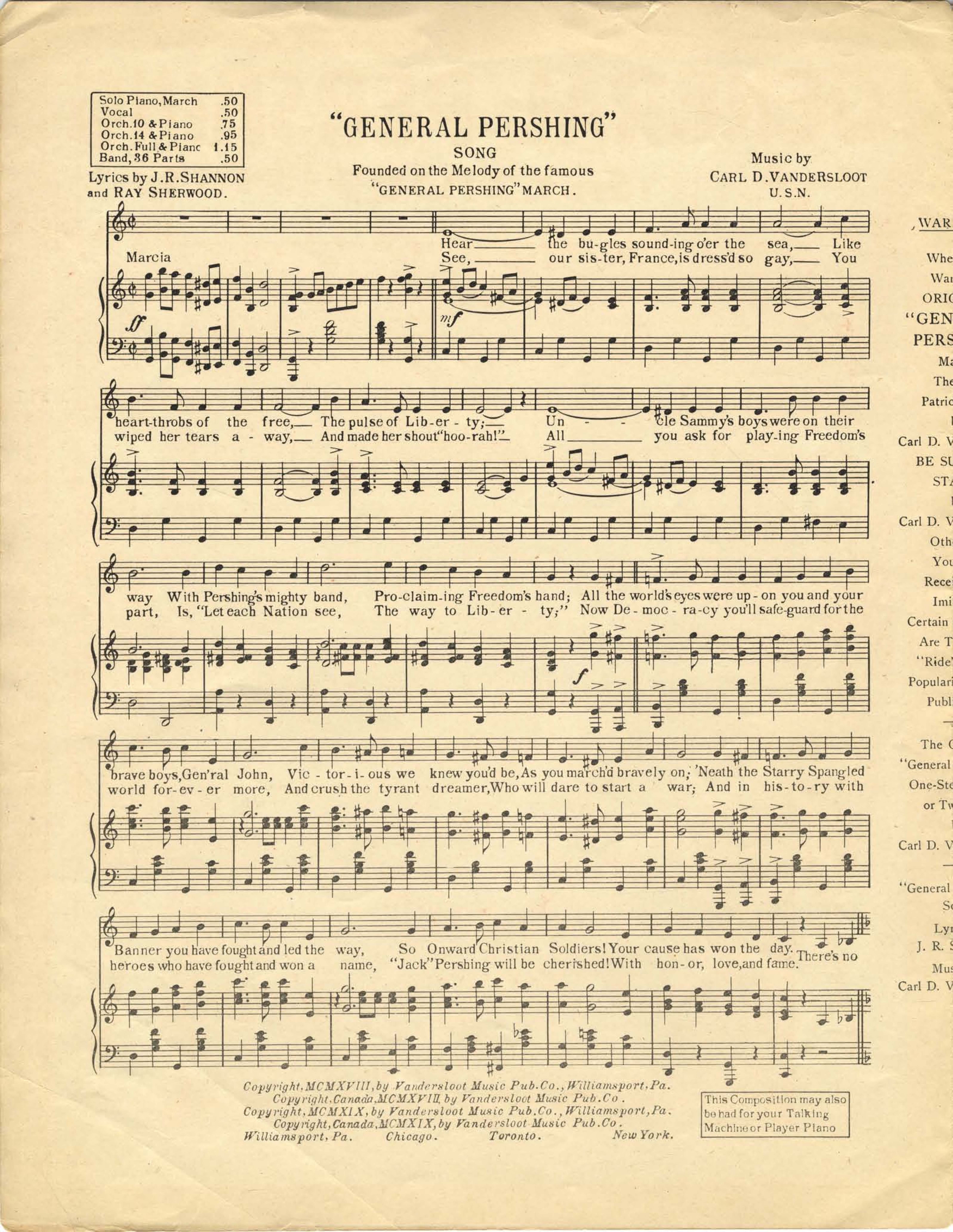 - General Pershing : song / lyrics by J.R. Shannon and Ray Sherwood ; music by Carl D. Vandersloot.