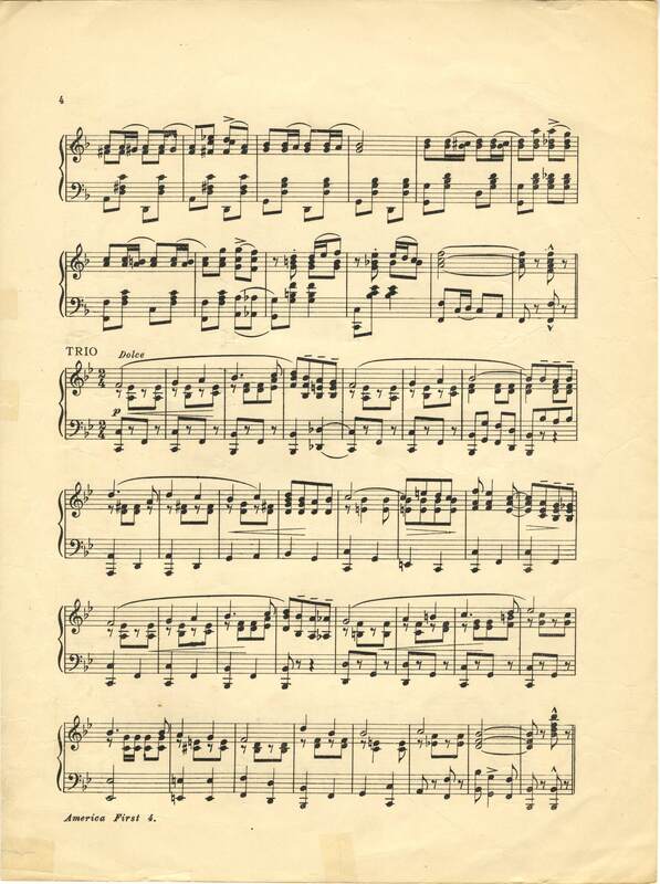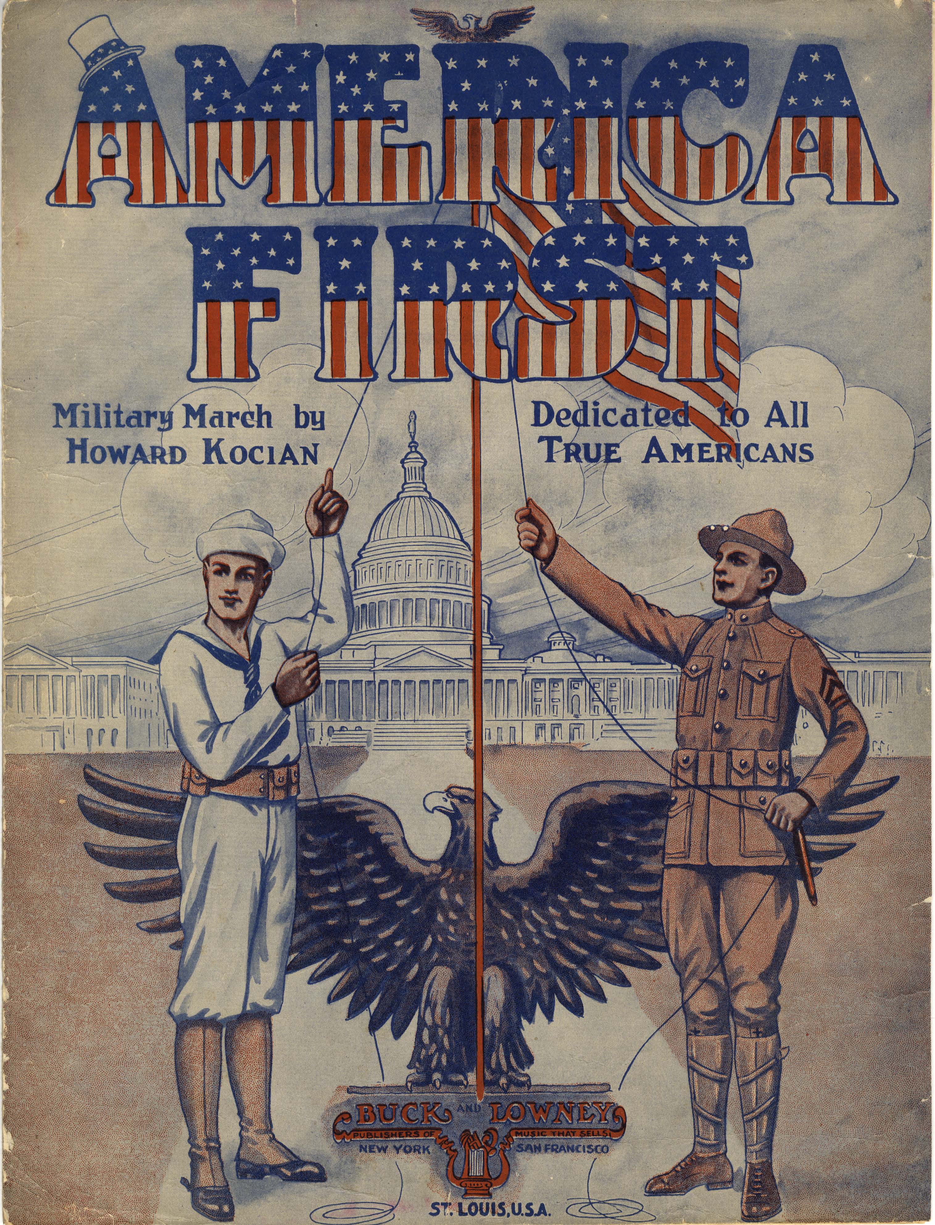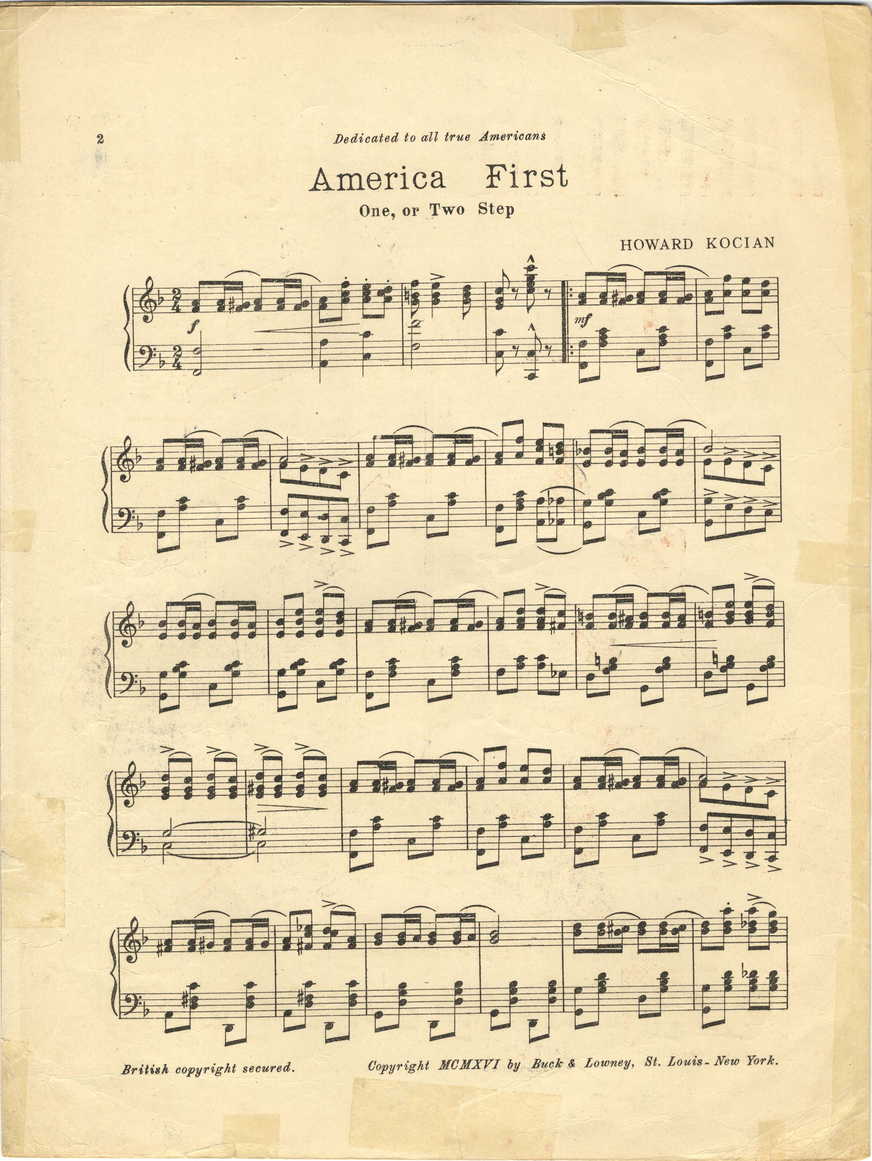 Kocian, Howard. 2000. “America First : Military March By Howard Kocian”. St. Louis, U.S.A. : Buck and Lowney, World War I Sheet Music, accessed February 11, 2026, https://digitalexhibits.library.wustl.edu/s/wwimusic/item/42948